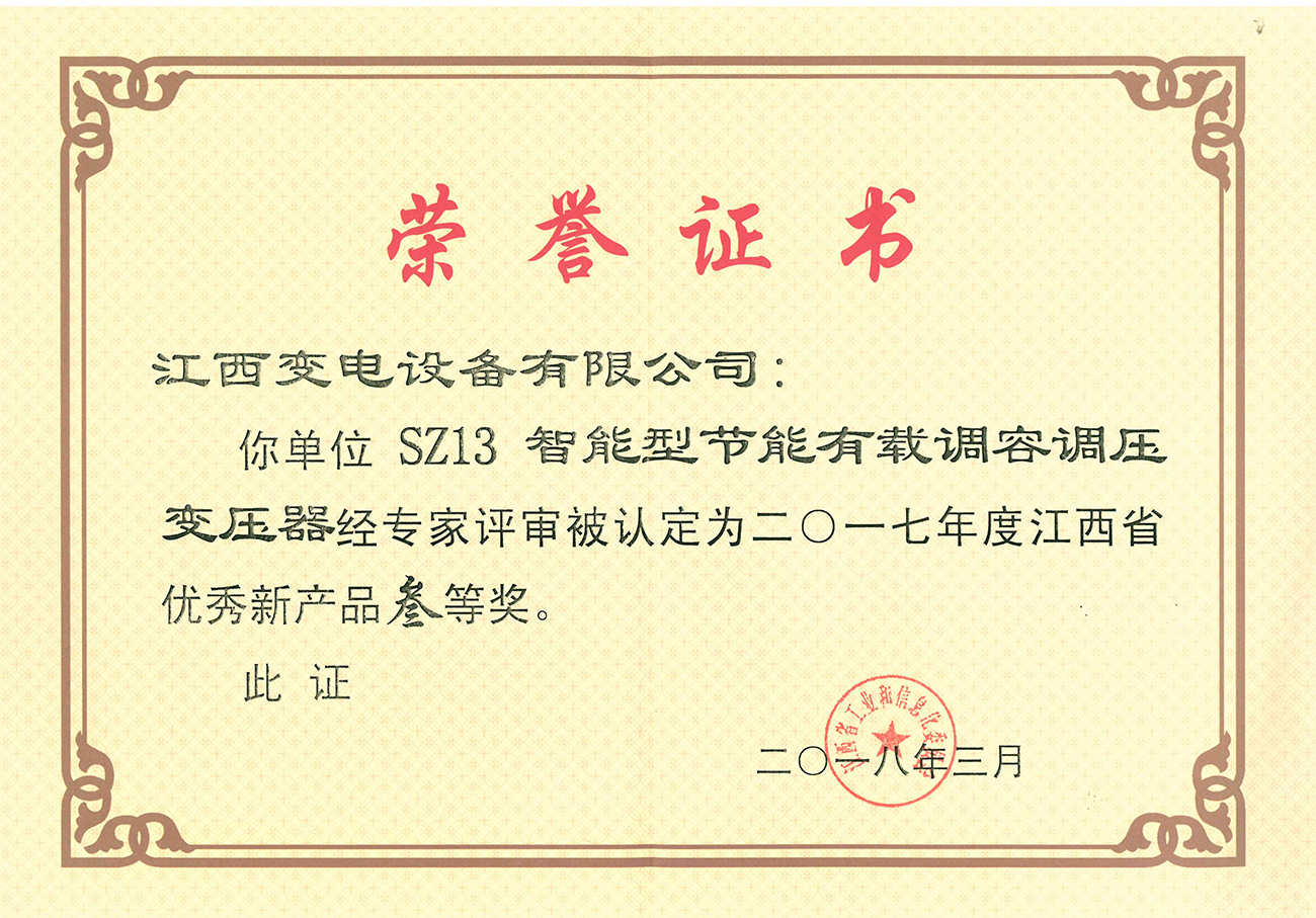江西省优秀新产品三等奖:SZ13智能型节能有载调容调压变压器(点击下载)
