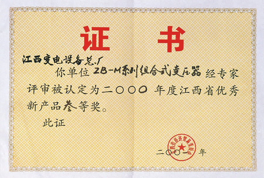 江西省优秀新产品三等奖:ZB-M系列组合式变压器(点击下载)