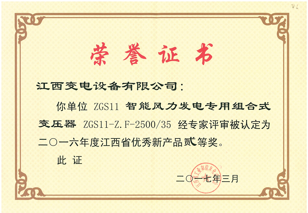江西省优秀新产品二等奖:ZGS11智能风力发电专用组合式变压器(点击下载)