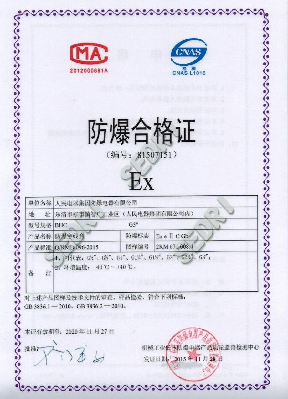 防爆合格证:BHC G3"防爆穿线盒(点击下载)