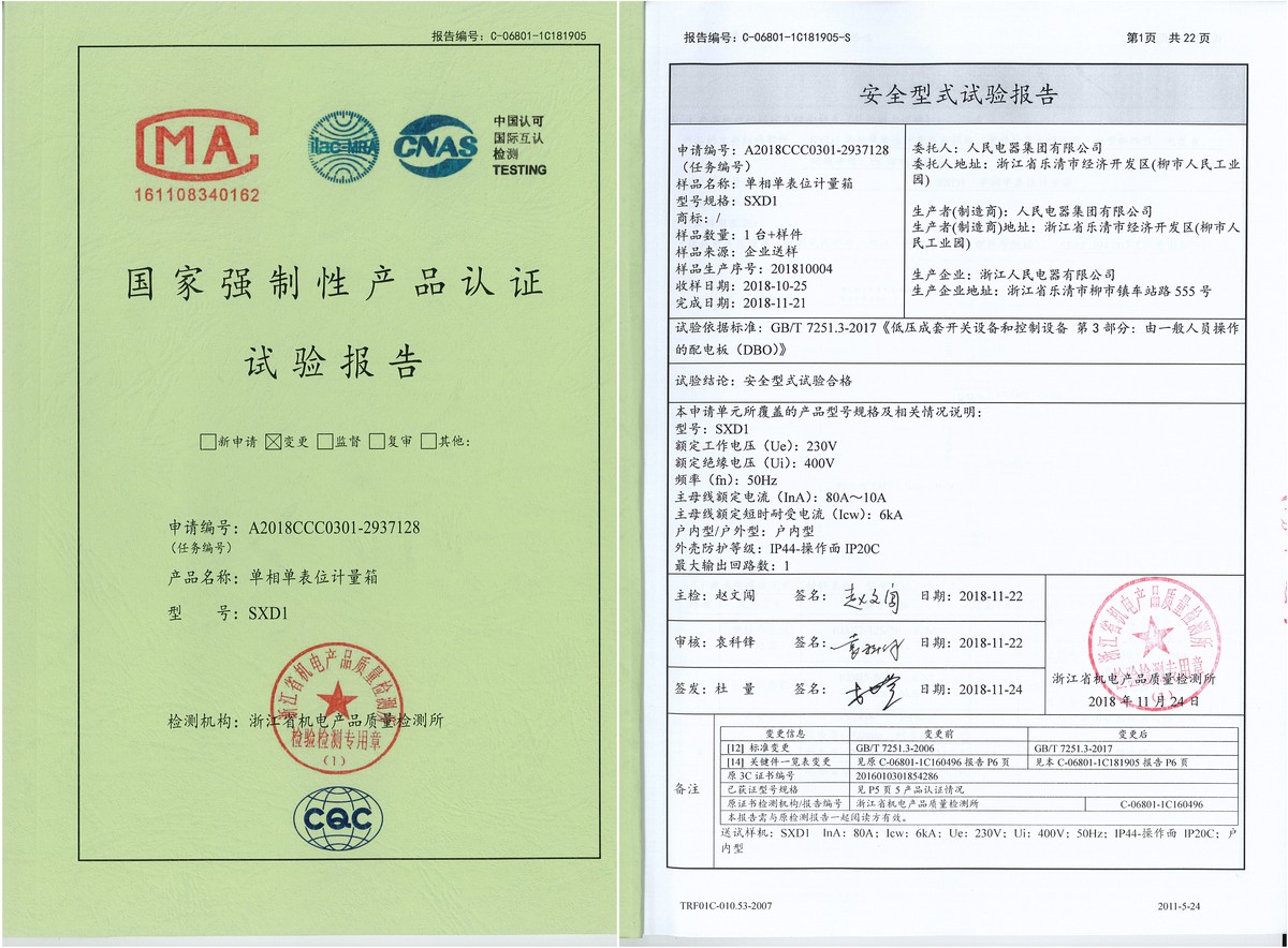 CCC试验报告(201811):SXD1单相单表位计量箱(点击下载)