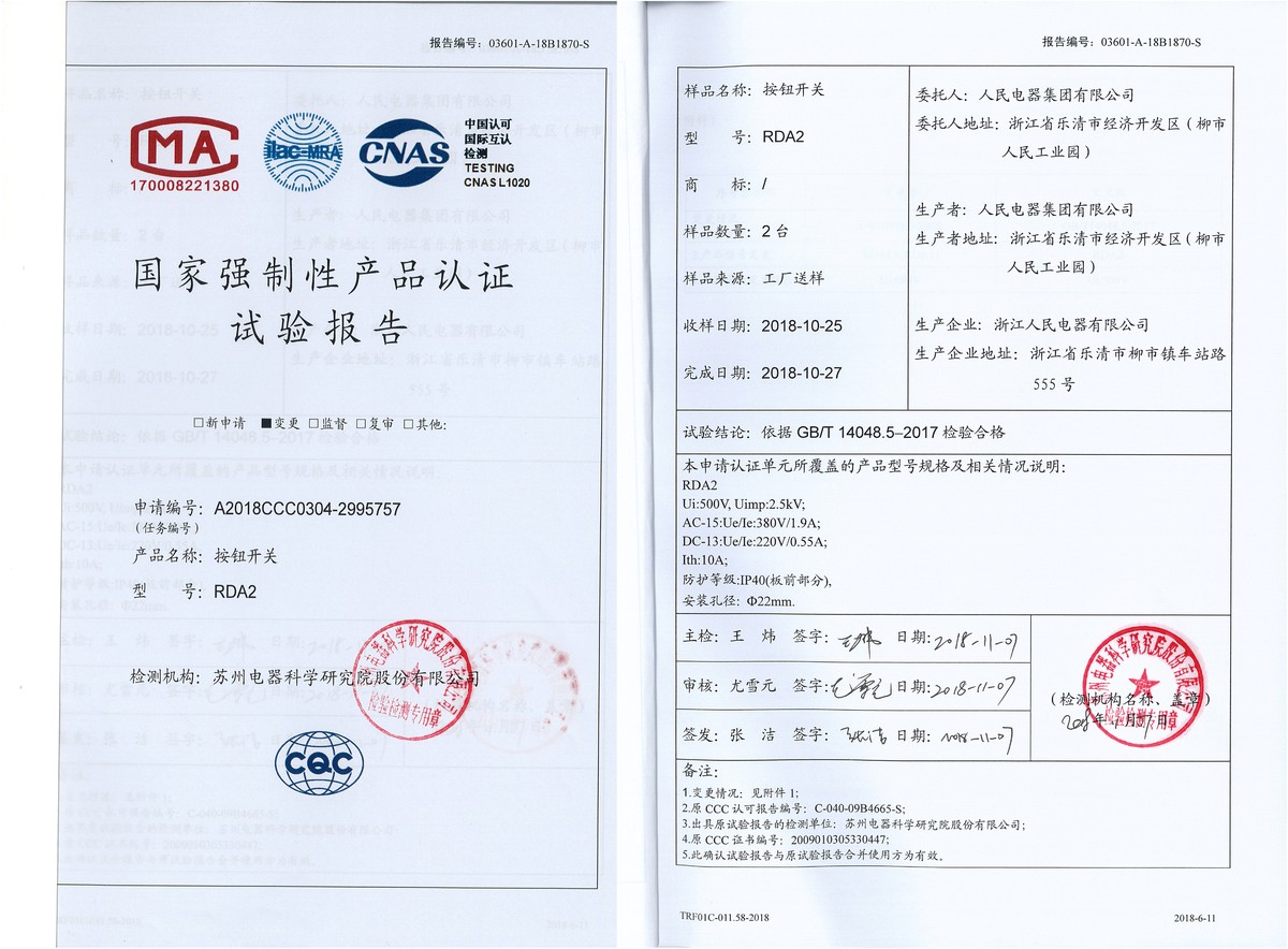 CCC试验报告(201811):RDA2按钮开关(点击下载)