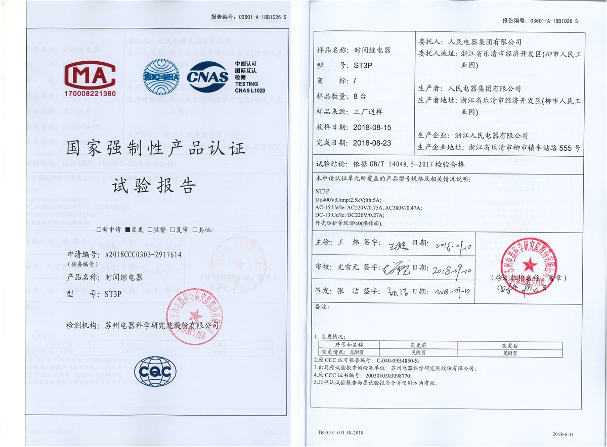 CCC试验报告(201809):ST3P时间继电器(点击下载)