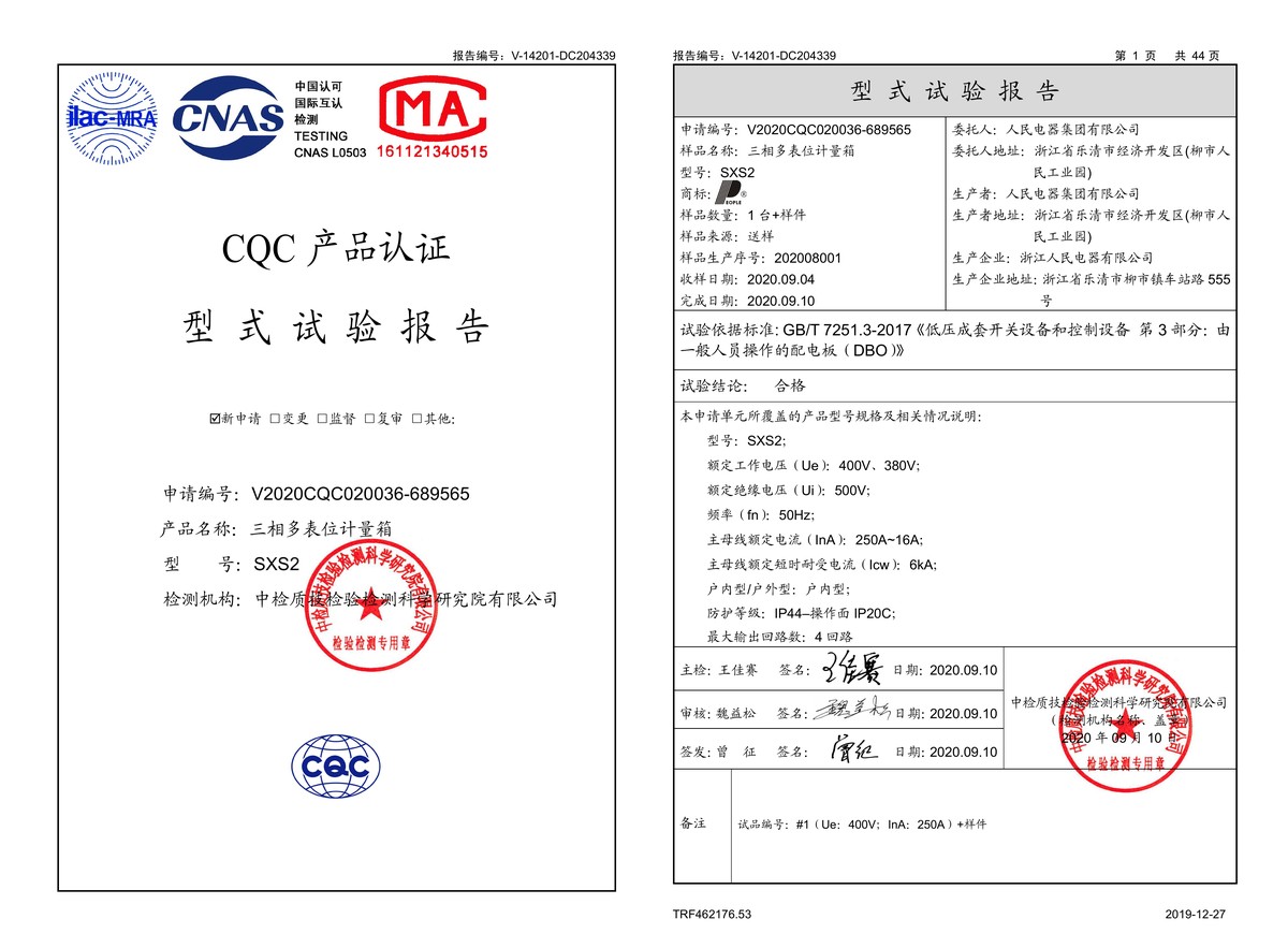 CQC试验报告(202009):SXS2三相多表位计量箱(点击下载)