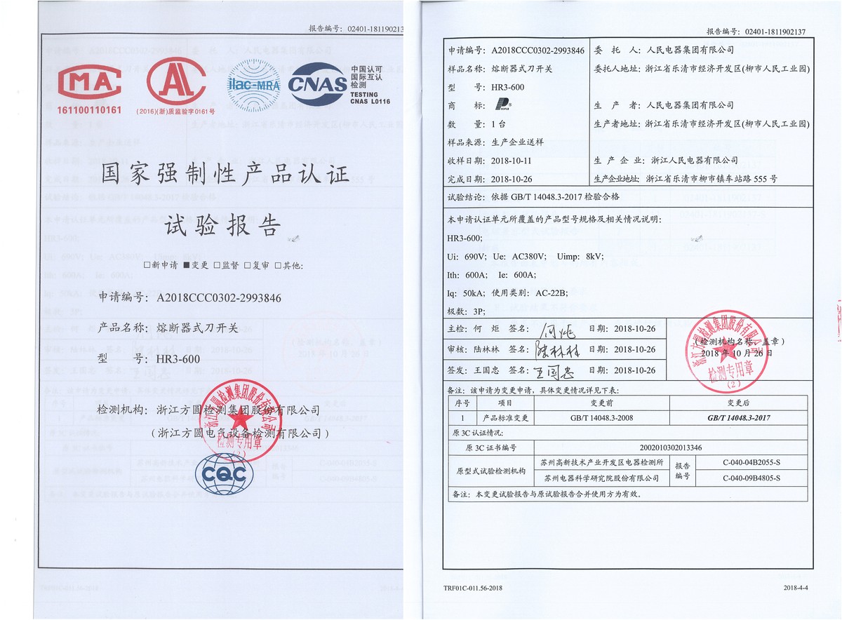 CCC试验报告(201810):HR3-600熔断器式刀开关(点击下载)