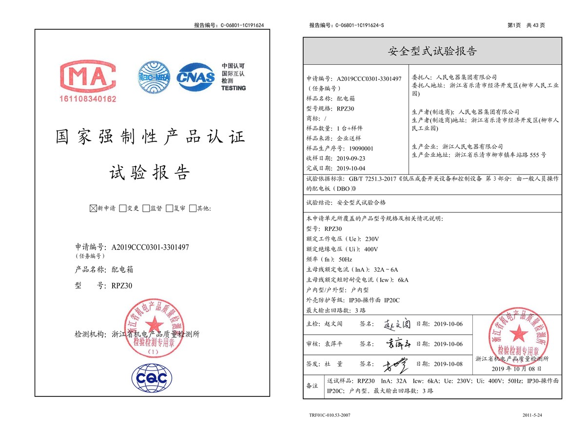 CCC试验报告(201910):RPZ30 32A~6A配电箱(点击下载)