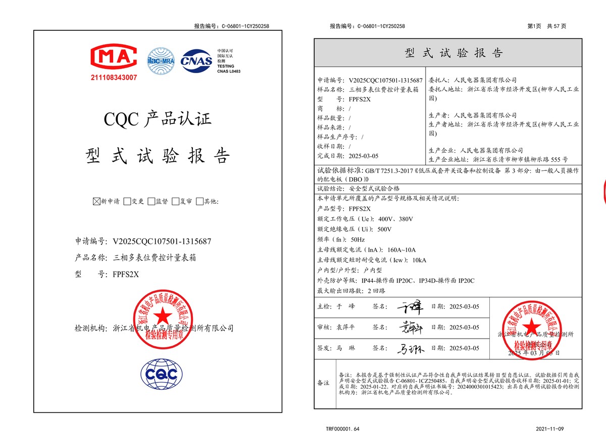CQC试验报告(202503):FPFS2X三相多表位费控计量表箱(点击下载)