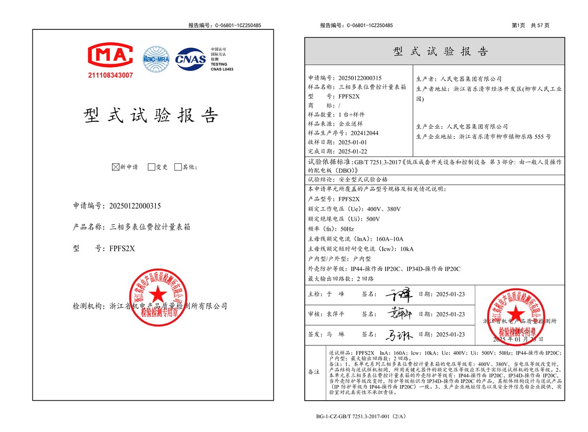 型式试验报告(202501):FPFS2X三相多表位费控计量表箱(点击下载)