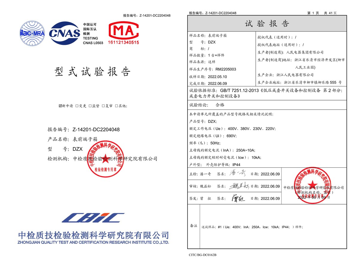 型式试验报告(202206):DZX表前端子箱(点击下载)