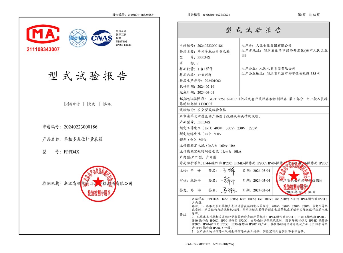 型式试验报告(202403):FPFD4X 单相多表位计量表箱(点击下载)