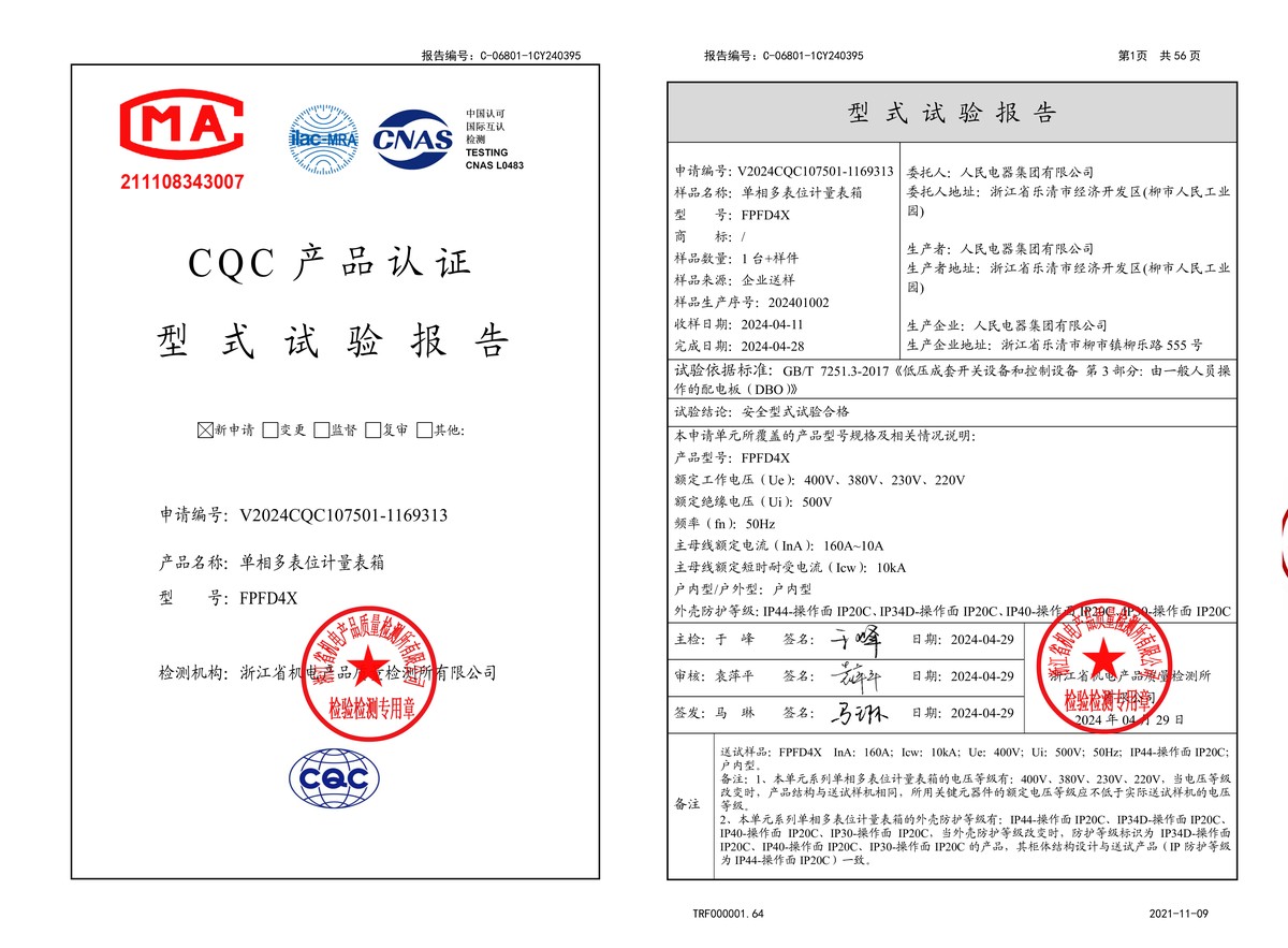 CQC试验报告(202404):FPFD4X 单相多表位计量表箱(点击下载)