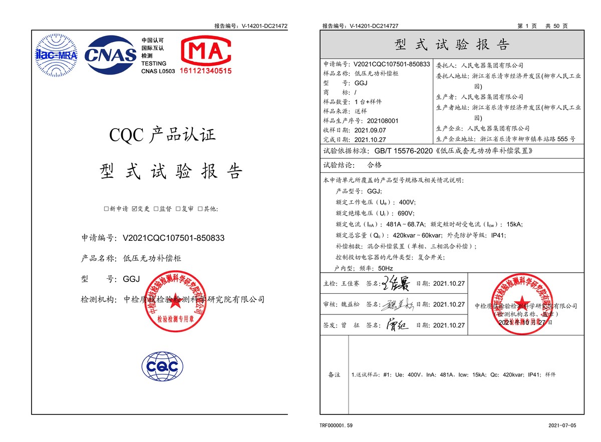 CQC试验报告(202110):GGJ低压无功补偿柜(点击下载)