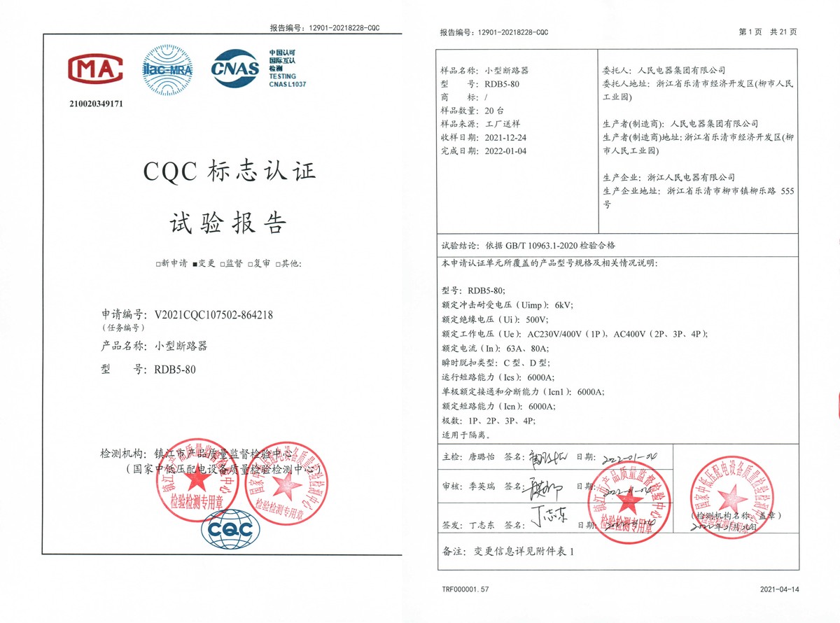 CCC试验报告(202201):RDB5-80小型断路器(点击下载)