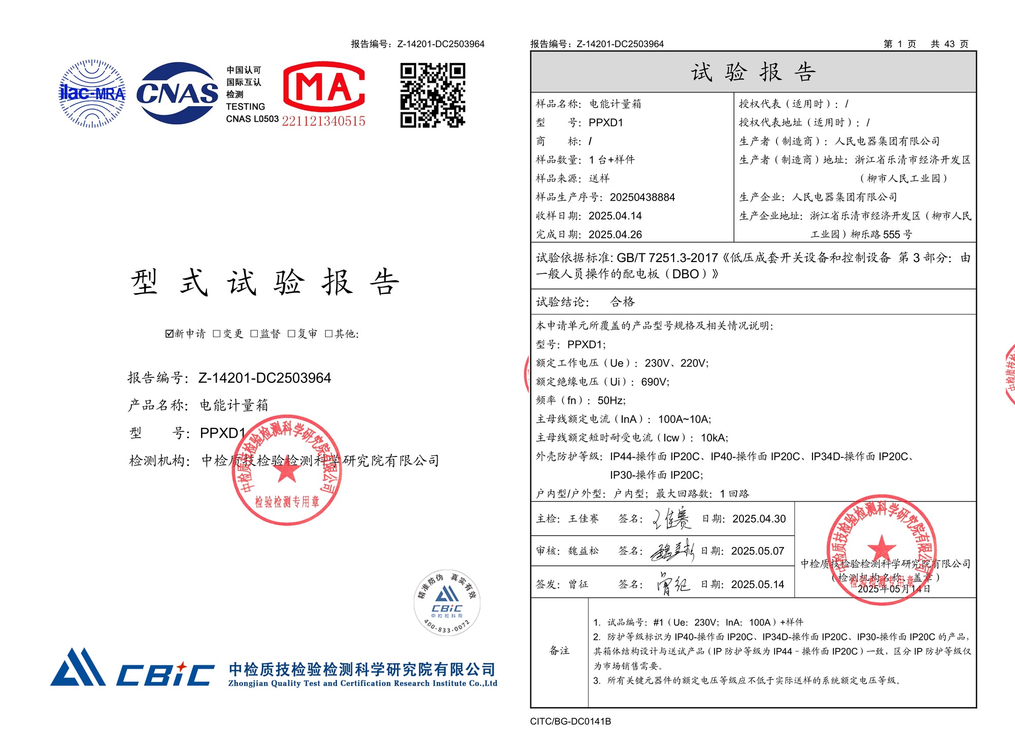 型式试验报告(202505):PPXD1电能计量箱(点击下载)