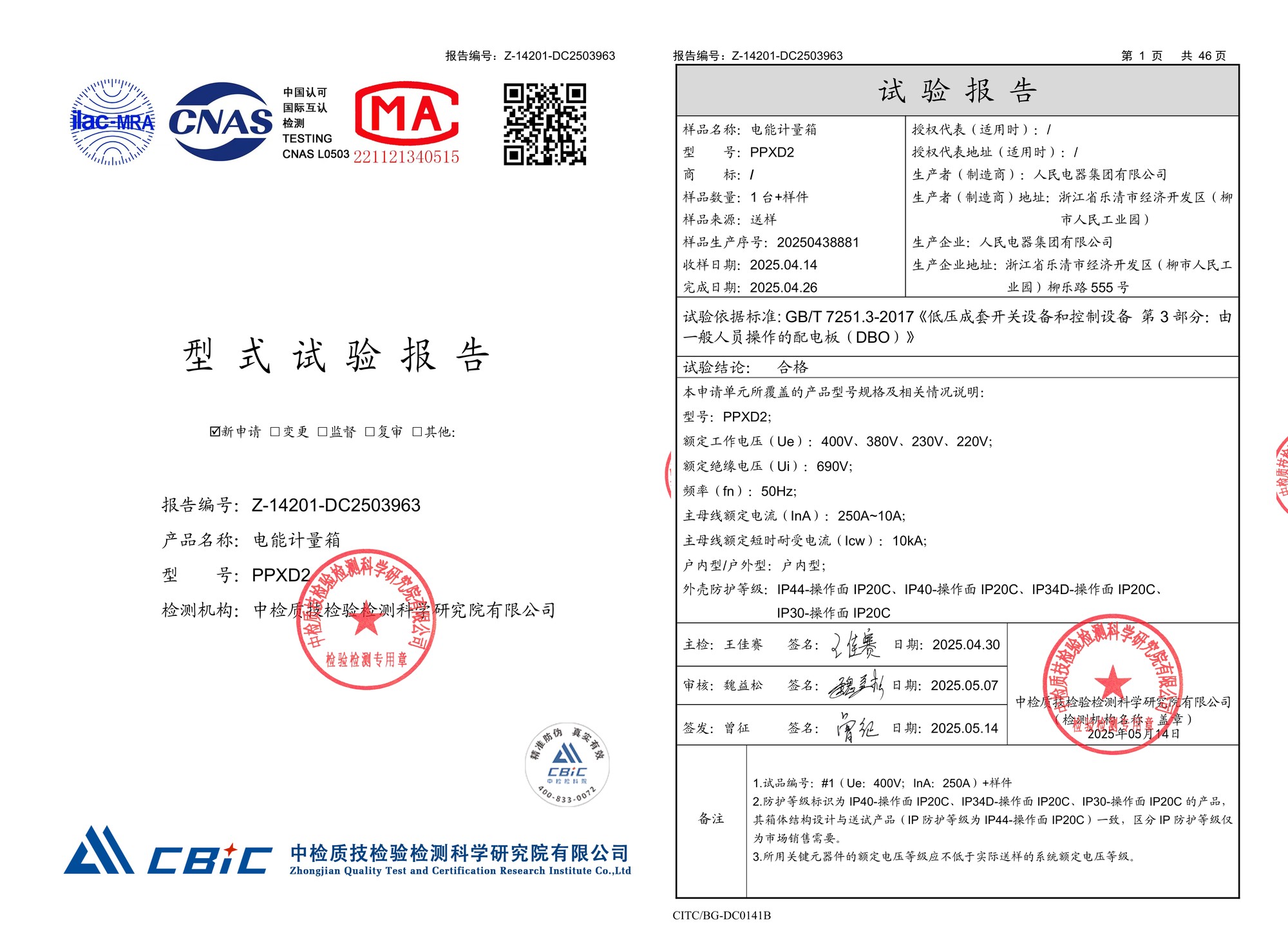 型式试验报告(202505):PPXD2电能计量箱(点击下载)