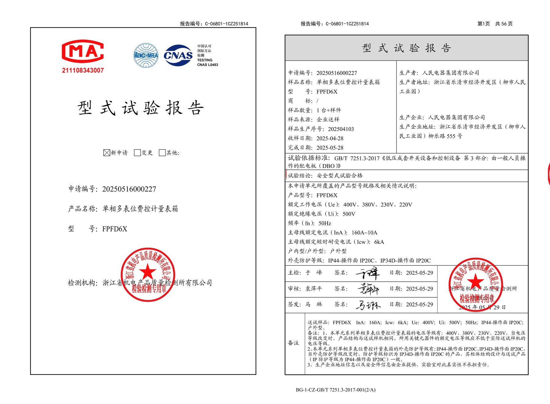型式试验报告(202505):FPFD6X 单相多表位费控计量表箱(点击下载)