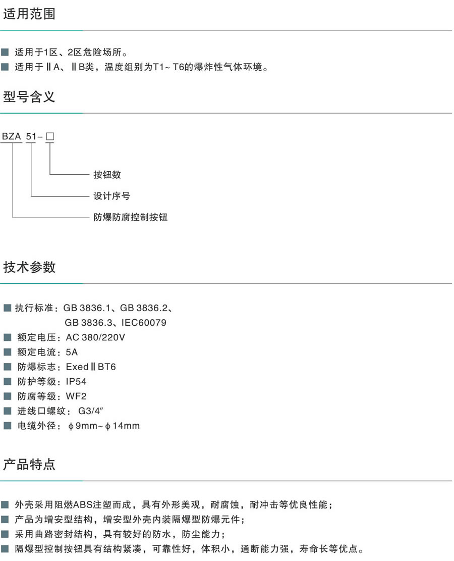 防爆合格证:BZA51 AC380V/220V 6A防爆防腐控制按钮