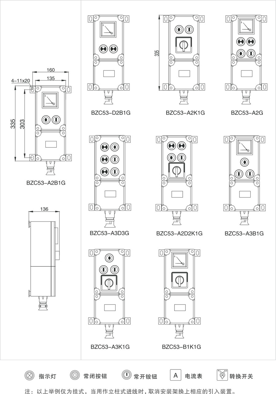 防爆合格证:BZC53-A2B1D3K1L AC380V/220V 10A防爆操作柱