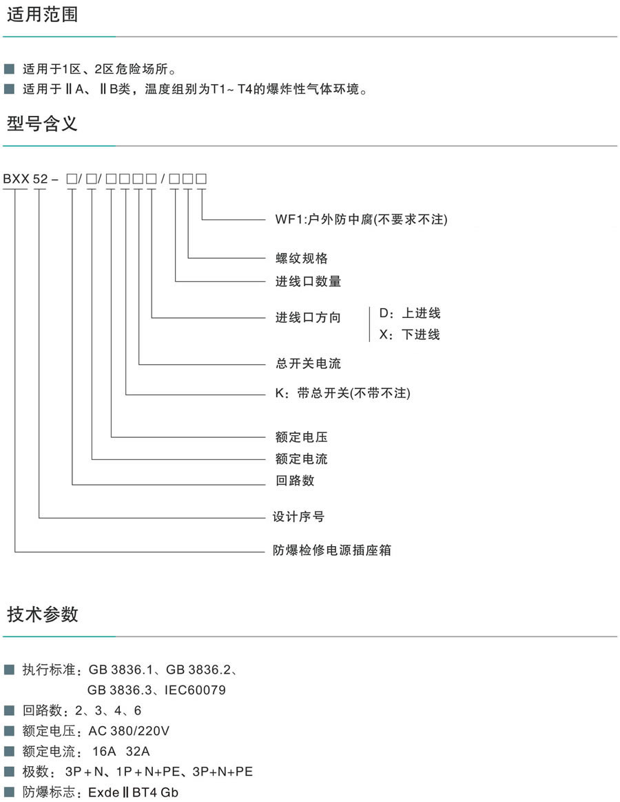 BXX52系列防爆检修电源插座箱(ⅡB、ⅡC)