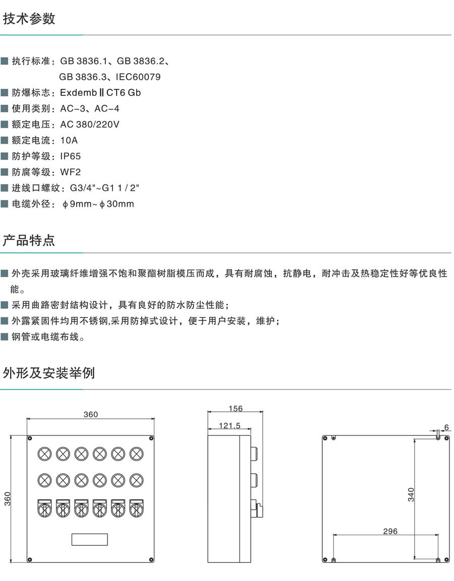 > BXK8050系列防爆防腐控制箱(ⅡC)