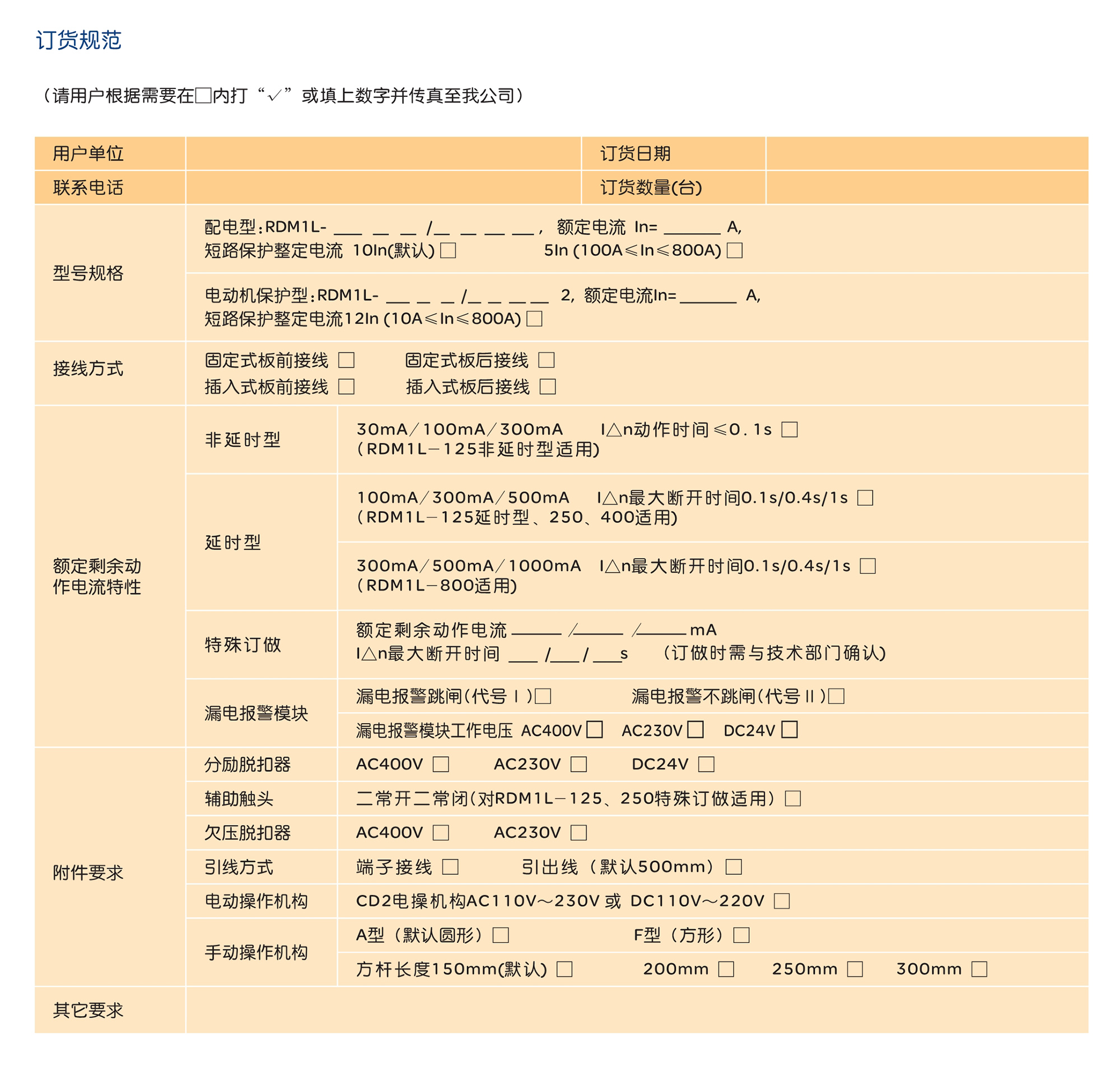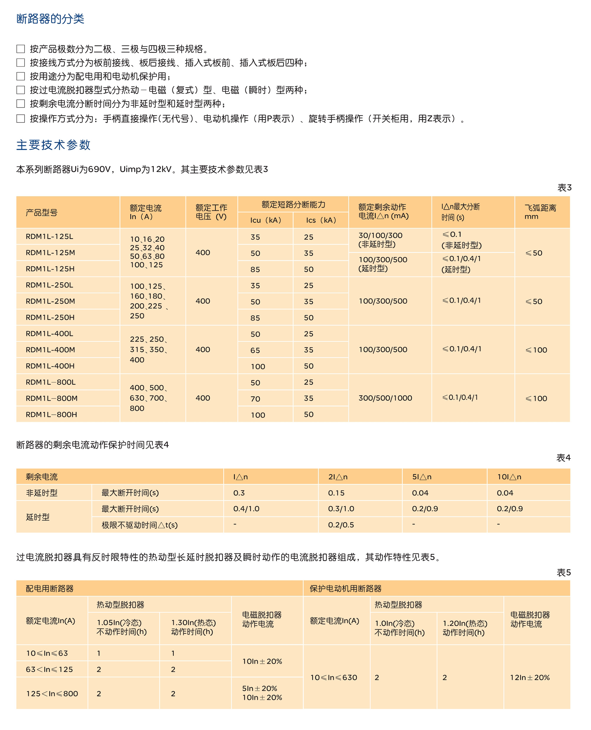 RDM1L系列剩余电流动作断路器(以下简称断路器),主要适用于交流50Hz,额定工作电压为400V,额定电流至800A的配电网络中,用来对人提供间接接触保护,也可用来防止因设备绝缘损坏, 产生接地故障电流而引起的火灾危险,并可用来分配电能和保护线路及电源设备的过载和短路, 还可作为线路的不频繁转换和电动机不频繁启动之用。