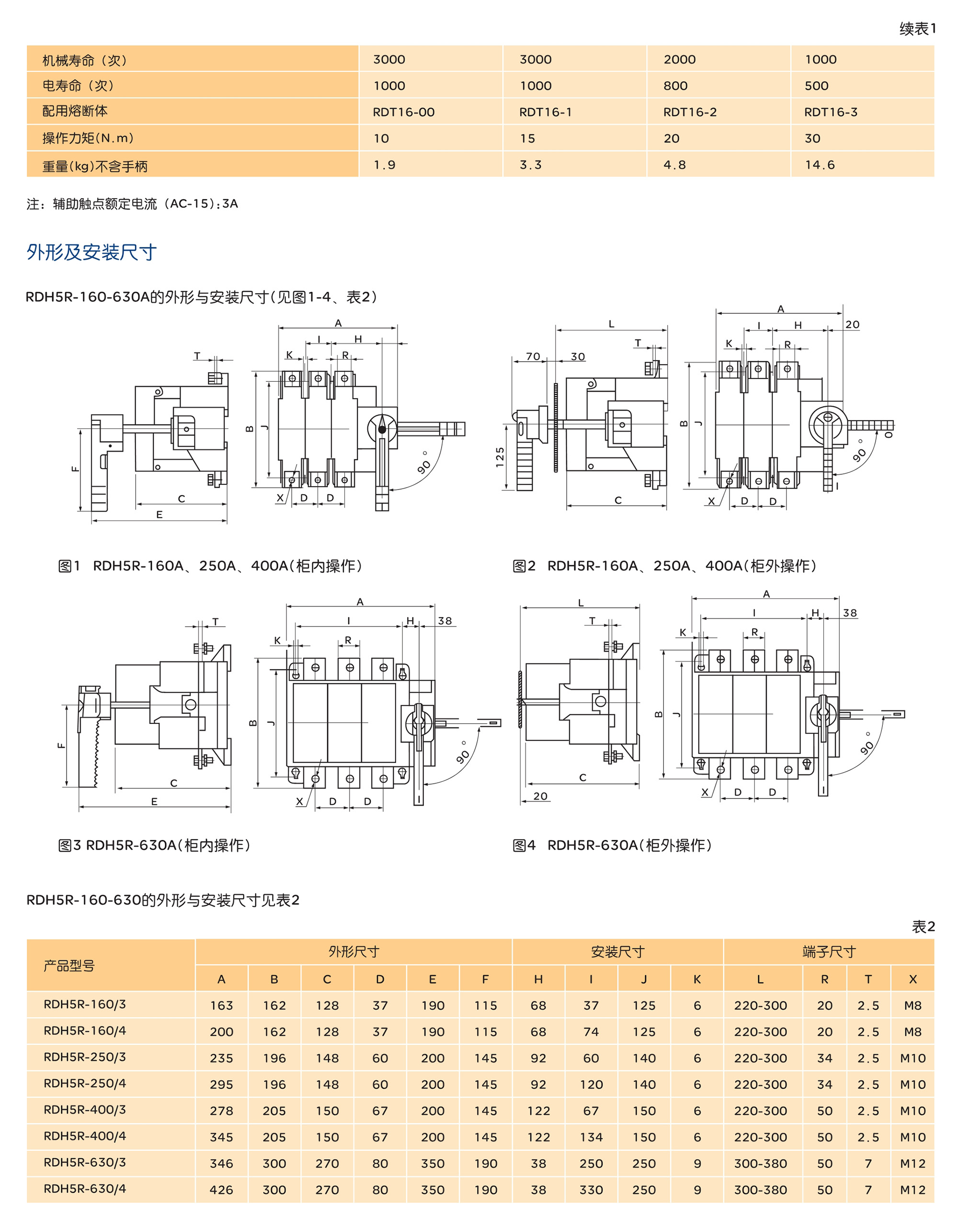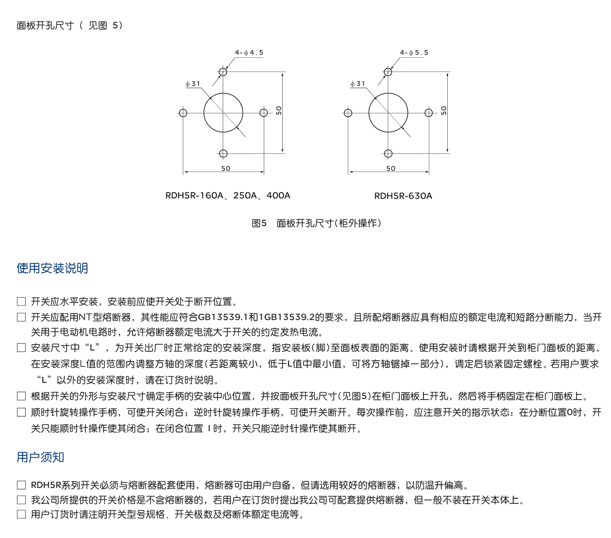 RDH5R系列隔离开关熔断器组,适用于交流50Hz、额定电压至660V、 额定电流至630A的工业配电网中:广泛用于具有高短路电流的配电电路和电动机电路中,用作手动不频繁接通与分断电路或电气隔离之用:可带负荷操作,并作电路短路?;ぶ谩? 产品符合:IEC 60947-3、GB/T 14048.3 标准。