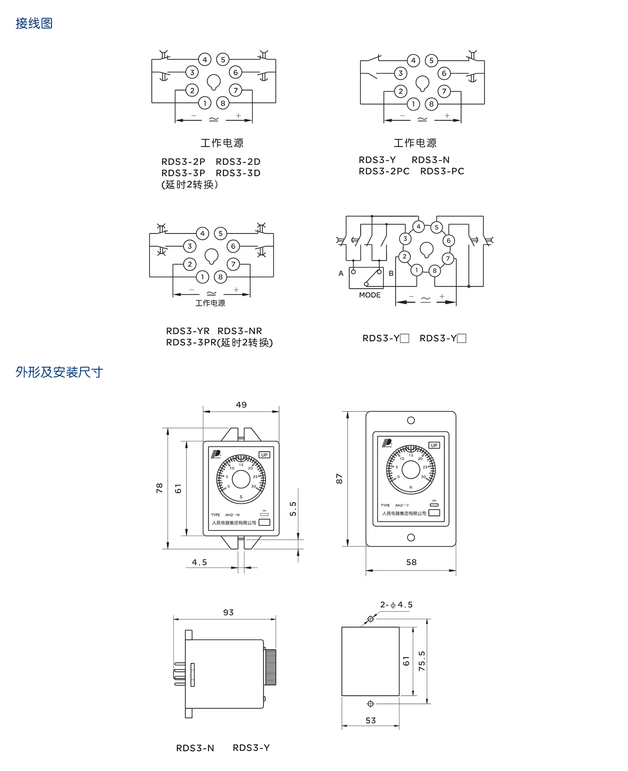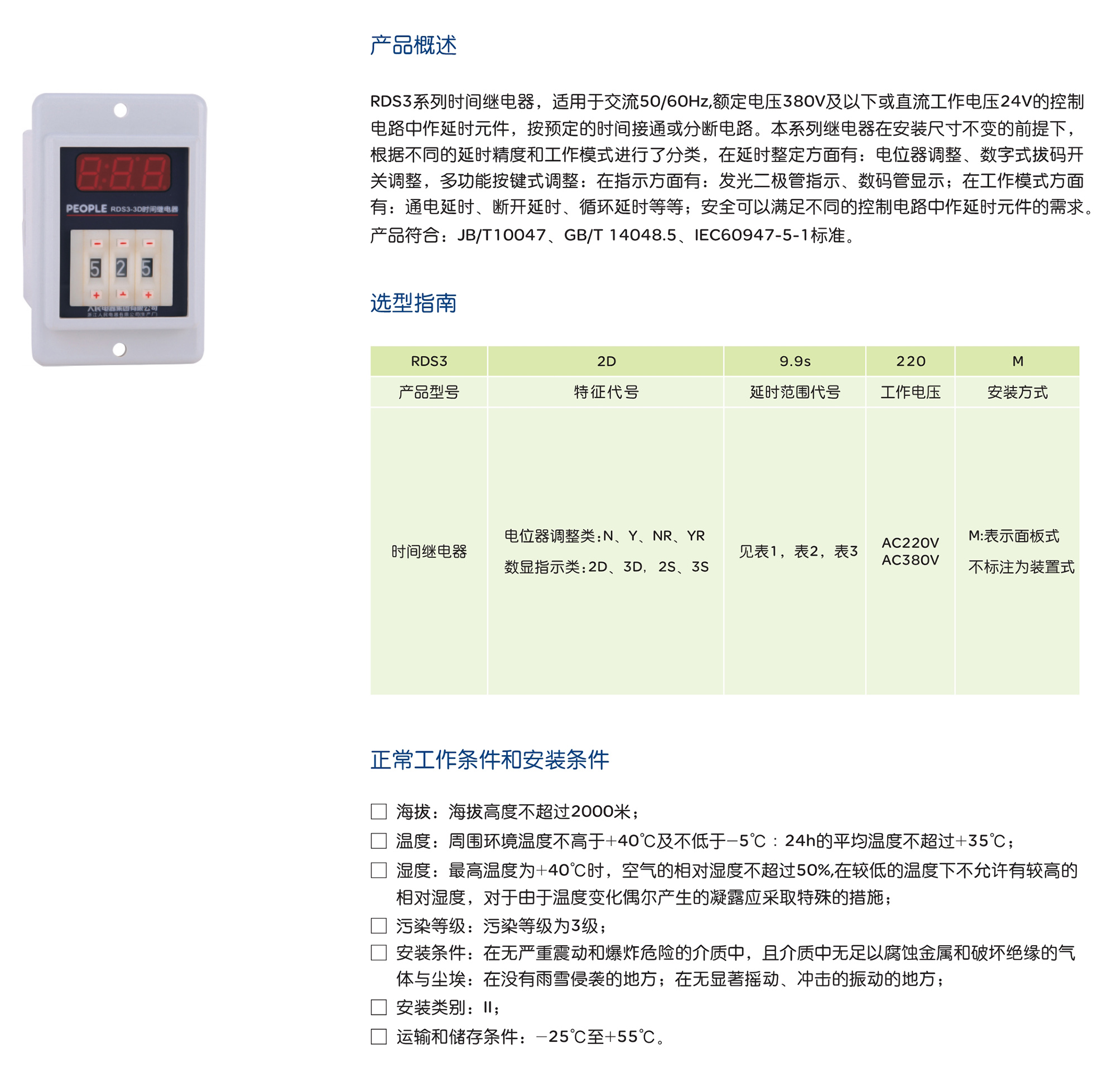 RDS3系列时间继电器,适用于交流50/60Hz,额定电压380V及以下或直流工作电压24V的控制