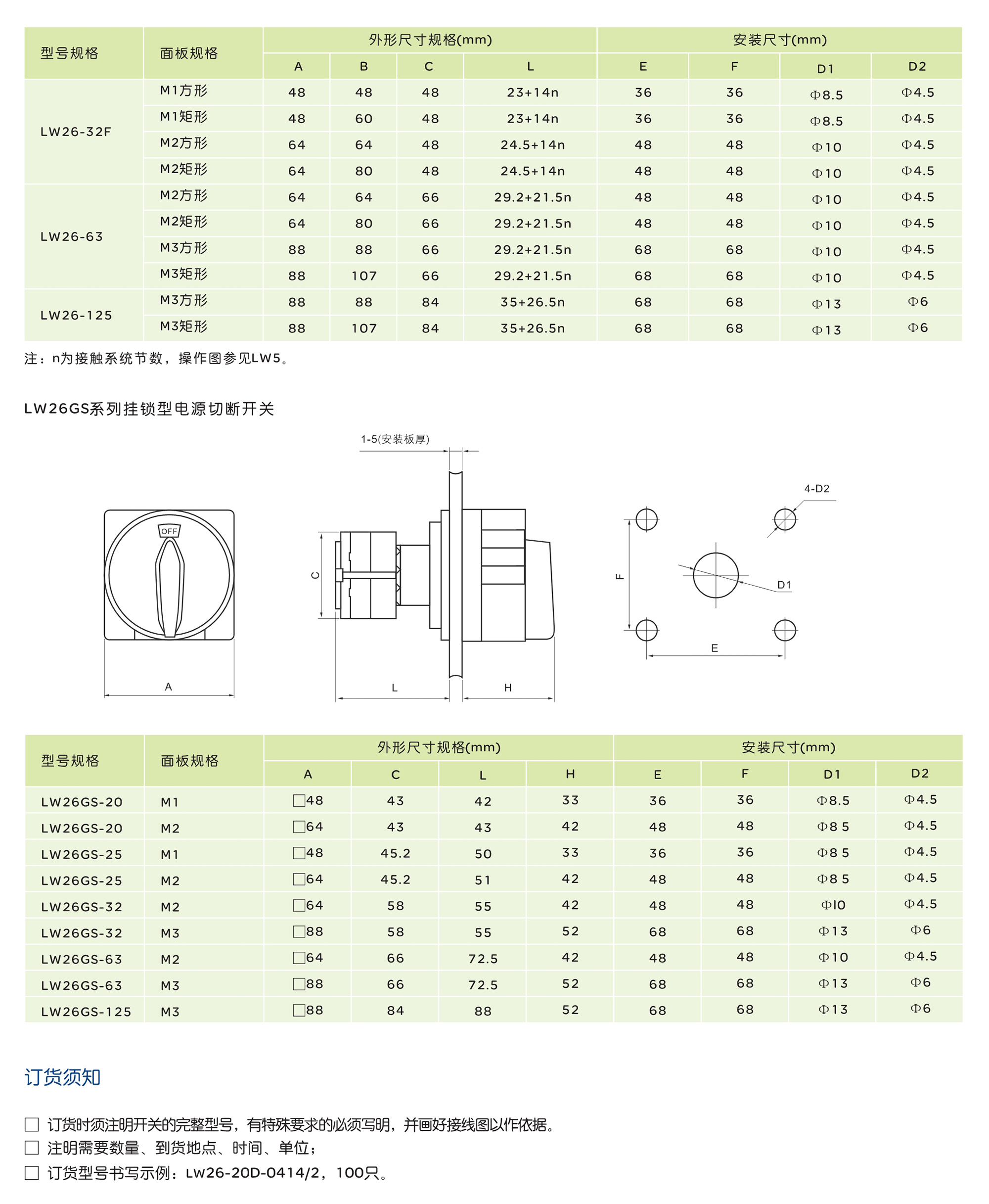 注:LW26可替代国内现有的LW5、LW6、LW12、LW15、H25、H212等各类开关以及进口设备上转换开关。