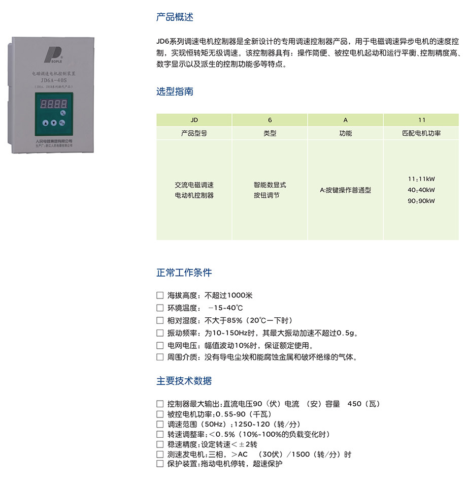 > JD6A系列调速电机控制器