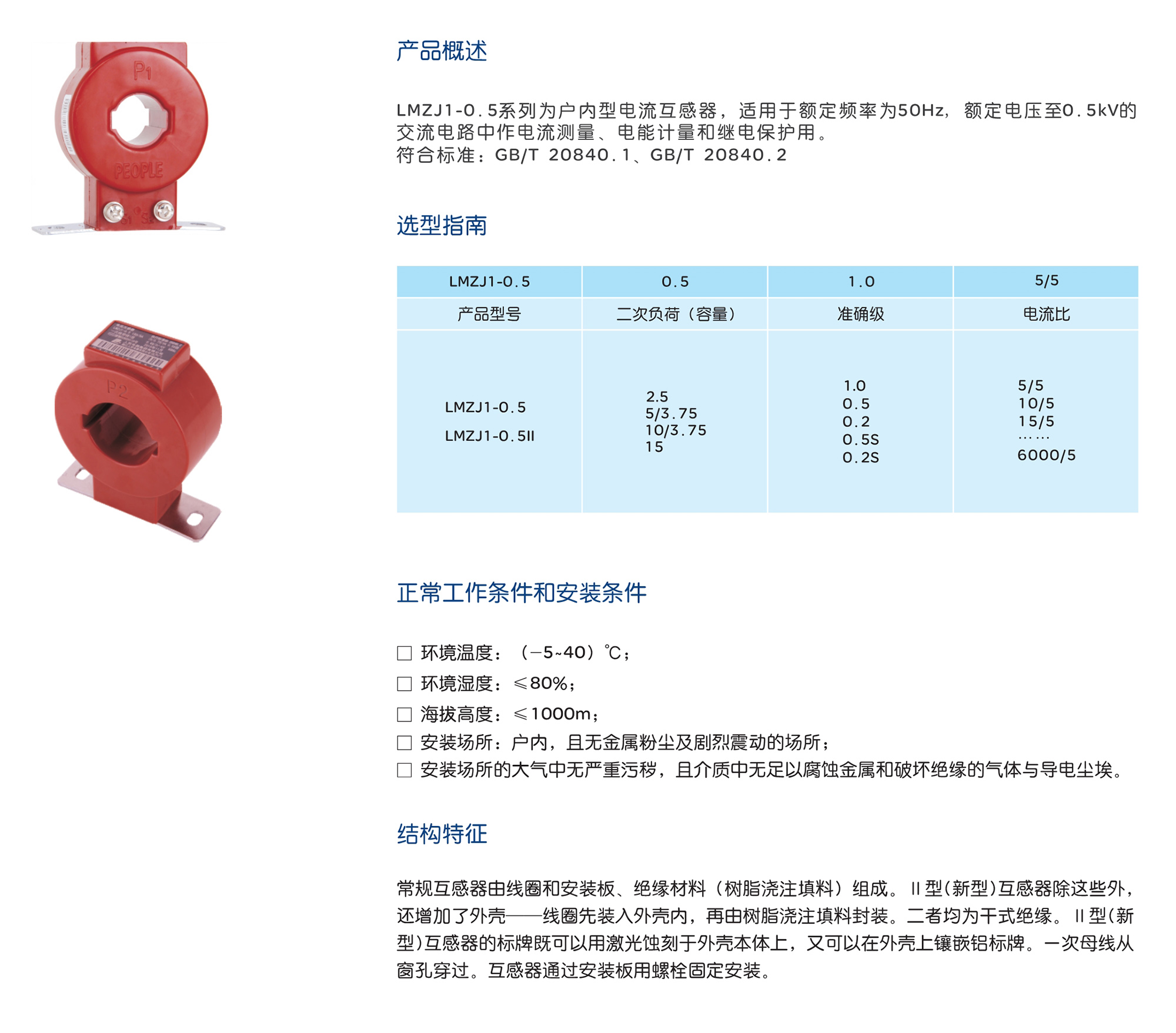 LMZJ1-0.5系列为户内型电流互感器,适用于额定频率为50Hz,额定电压至0.5kV的交流电路中作电流测量、电能计量和继电?;び?。