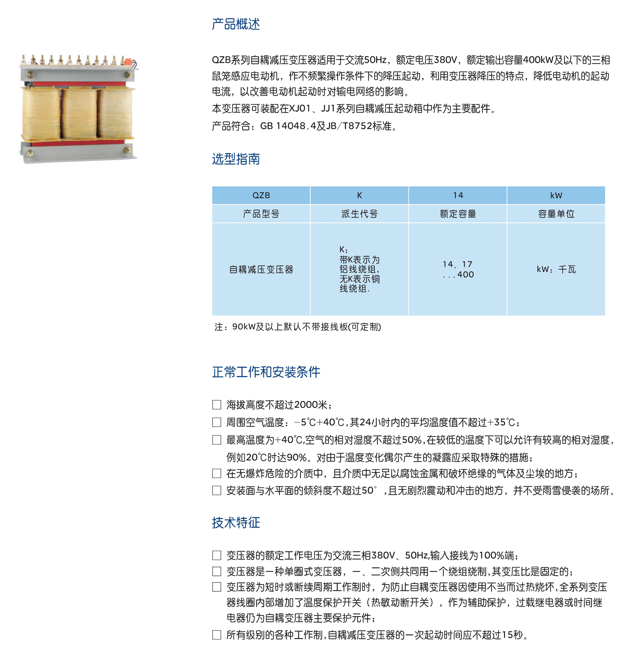 QZB系列自耦减压变压器