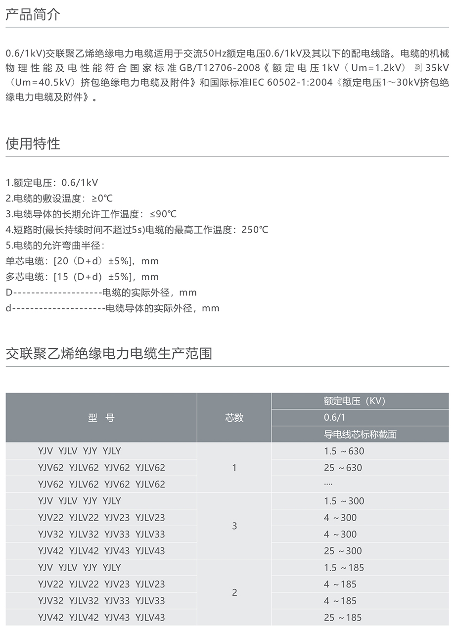 > 0.6-1KV交联聚乙烯绝缘电力电缆