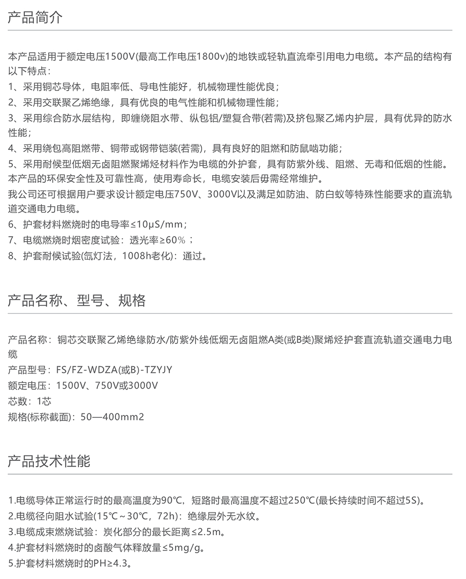 > 直流1500V交联聚乙烯绝缘轨道交通电力电缆