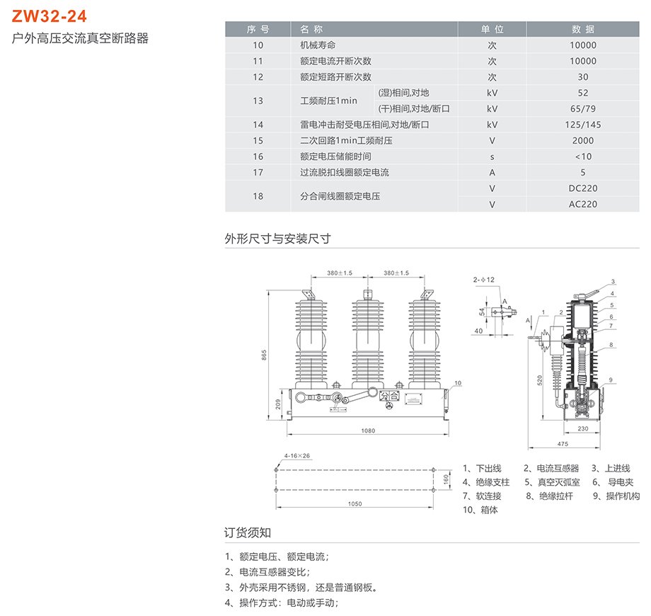 ZW32-24/630-25型户外高压交流真空断路器