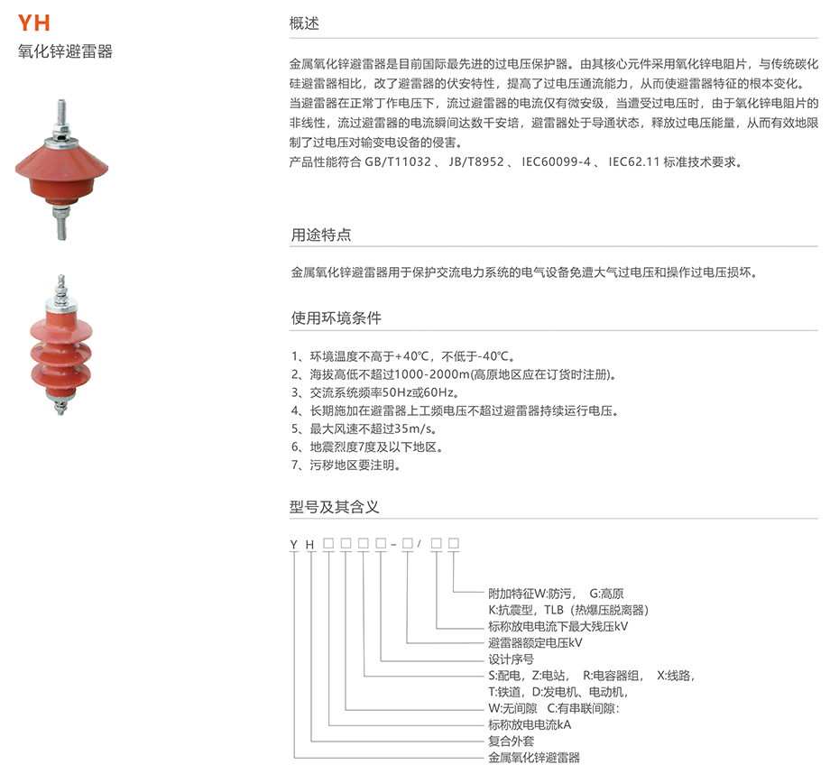 YH氧化锌避雷器