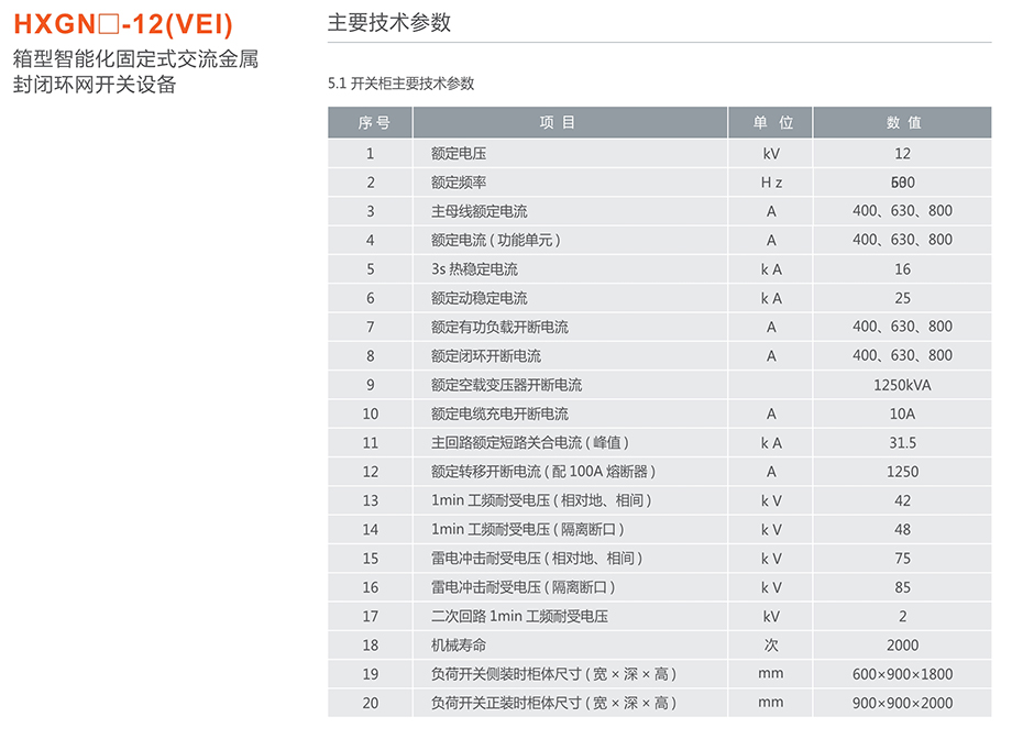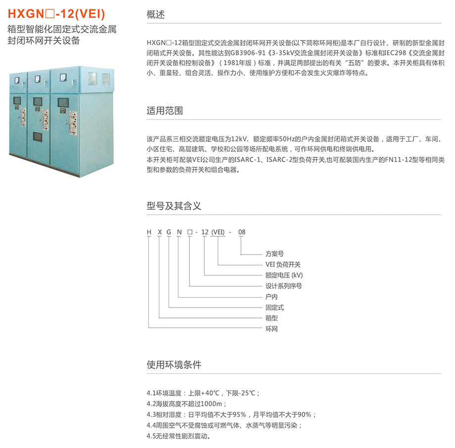 HXGN□-12(VEI)箱型固定式交流金属封闭环网开关设备