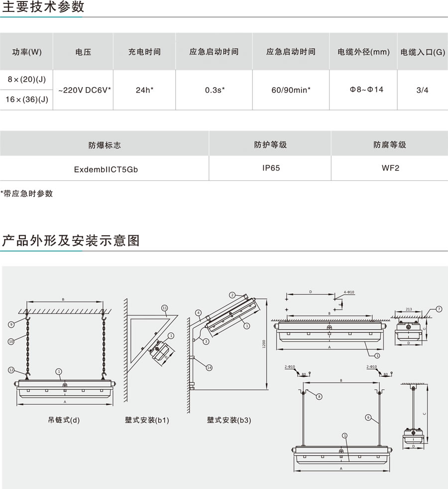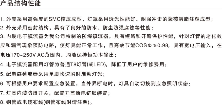 1.1区、2区危险场所或20区、21区、22区危险场所; 2.ⅡA、ⅡB、ⅡC类爆炸性气体环境或可燃性粉尘环境; 3.户内、户外(IP54、I|P65) 4.温度组别:T5/T6; 5.应用于化工、炼油、石油开采、海洋石油平台、油轮、军工等危险场所照明。