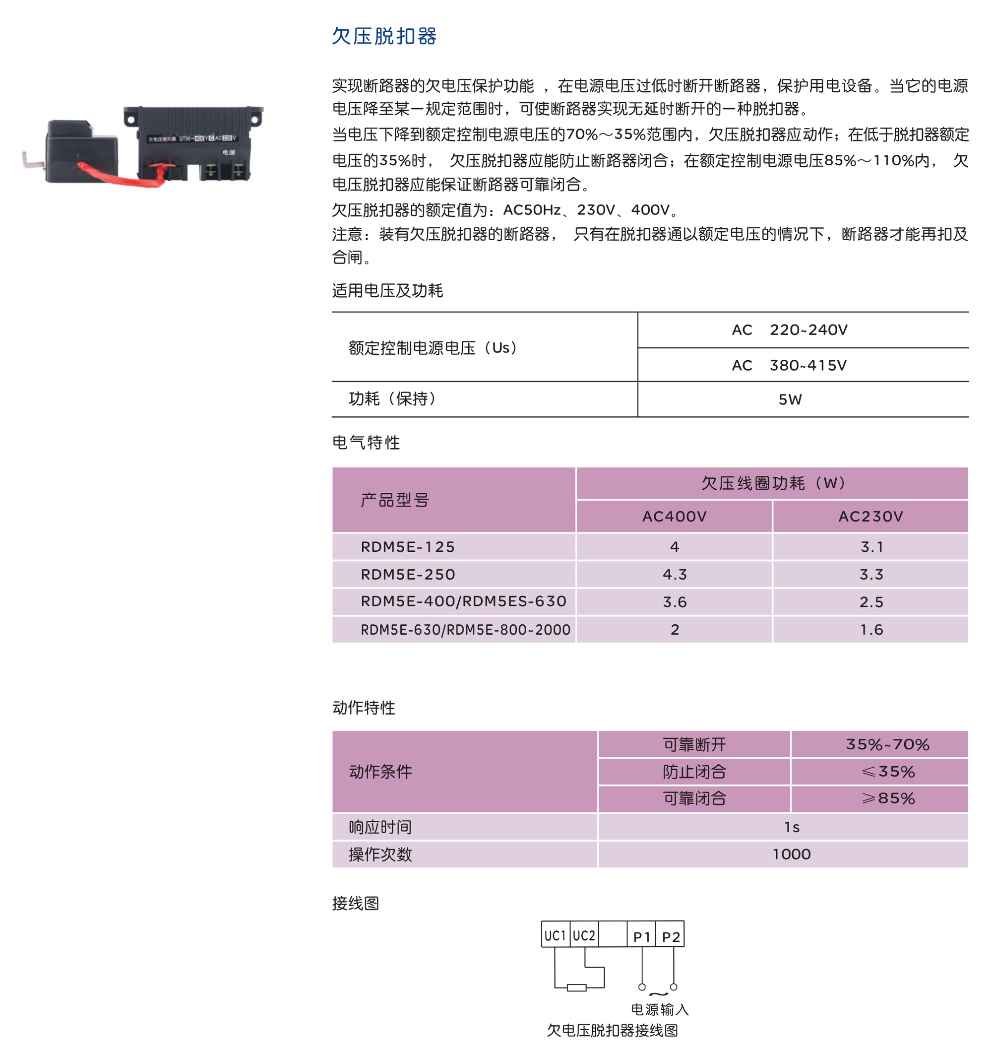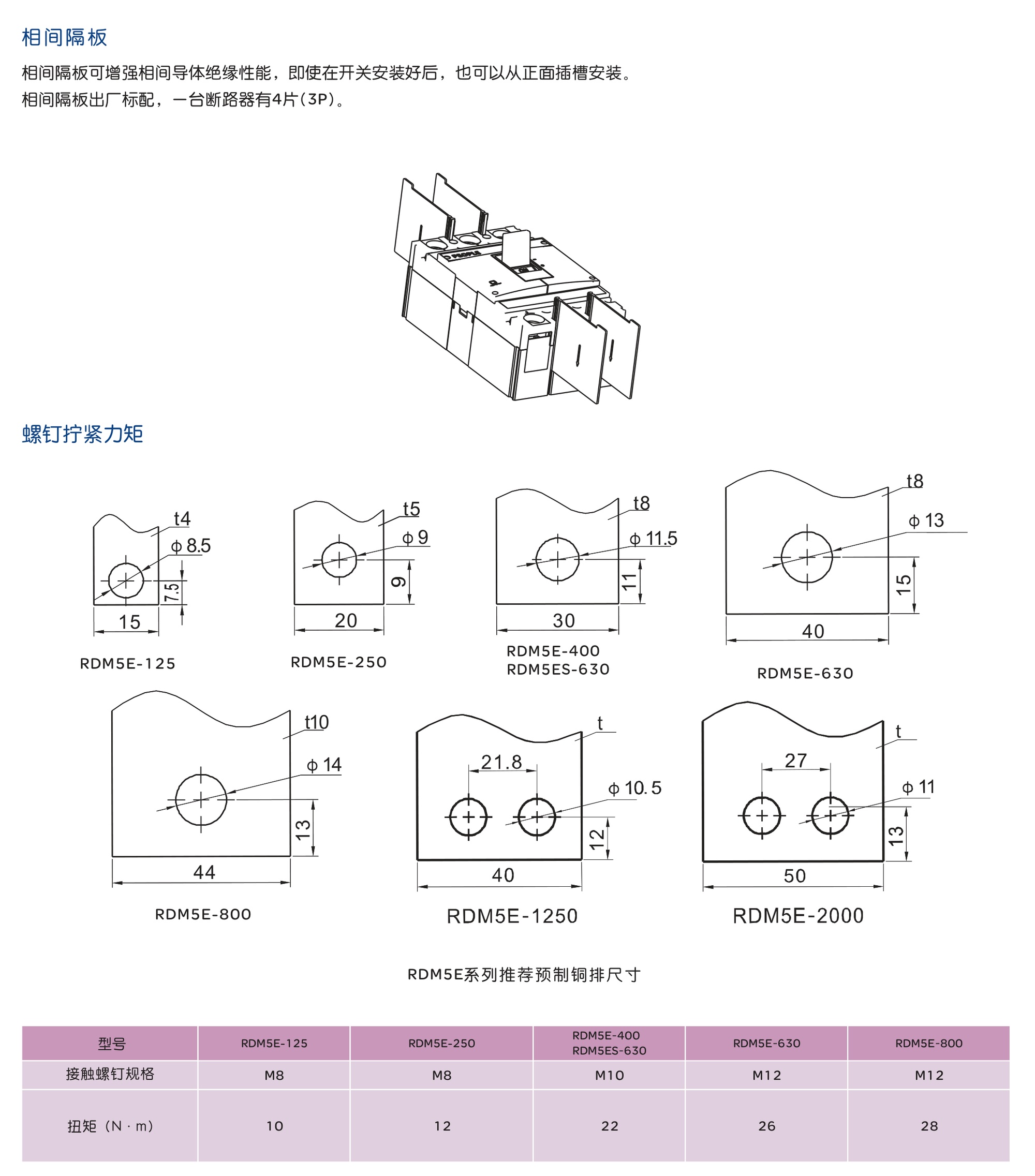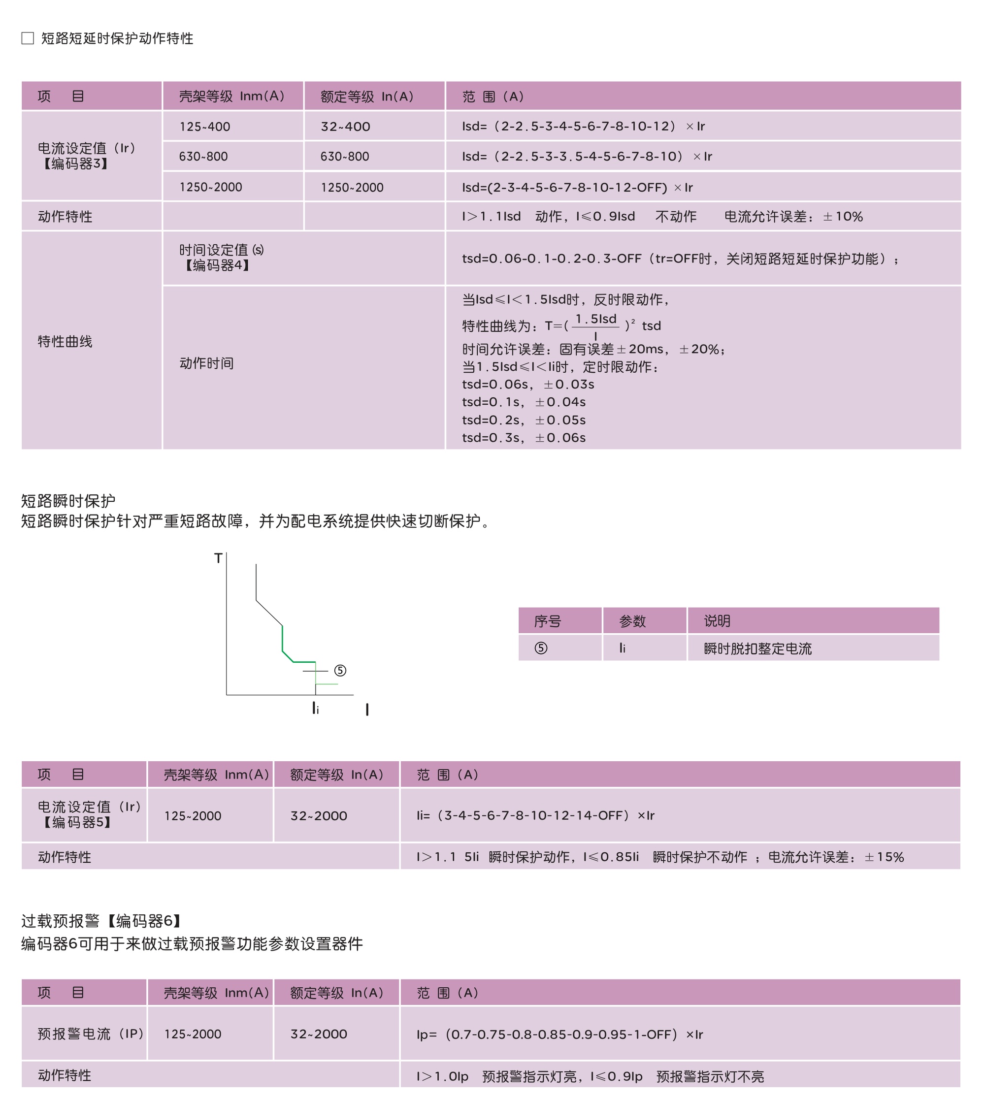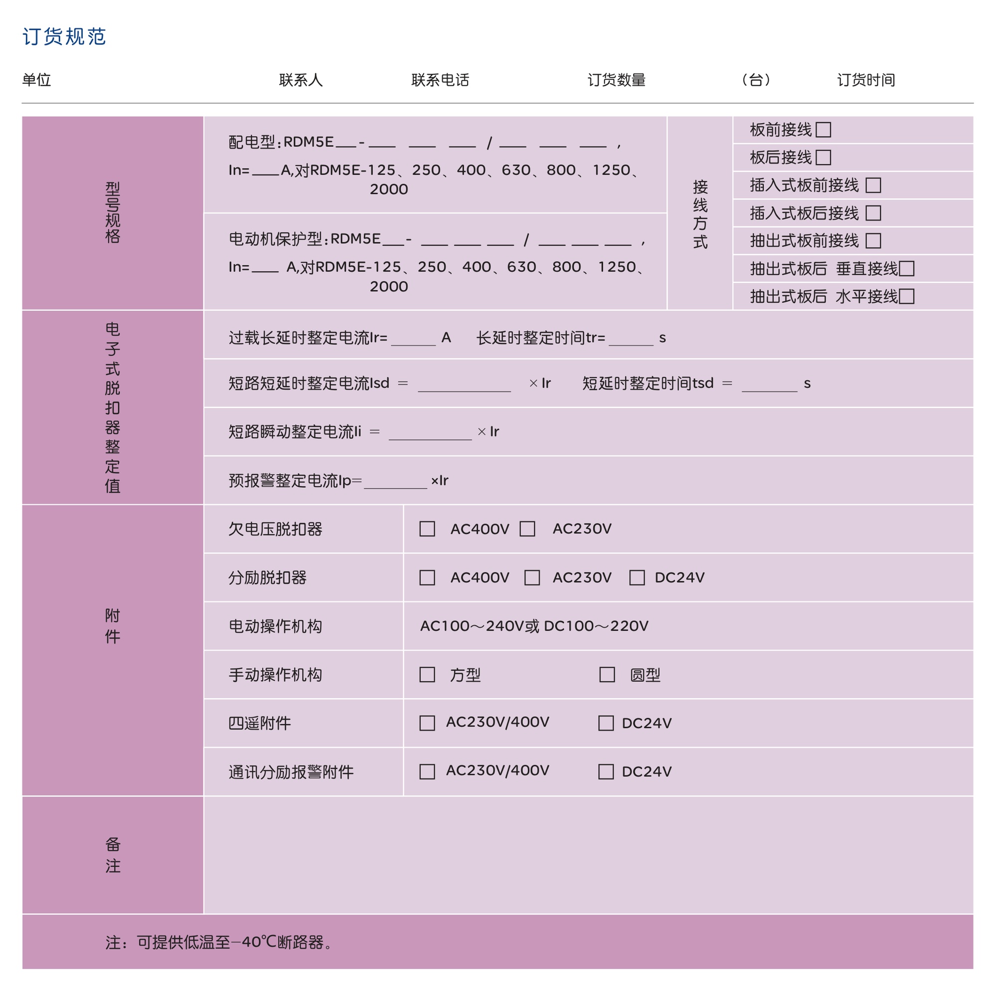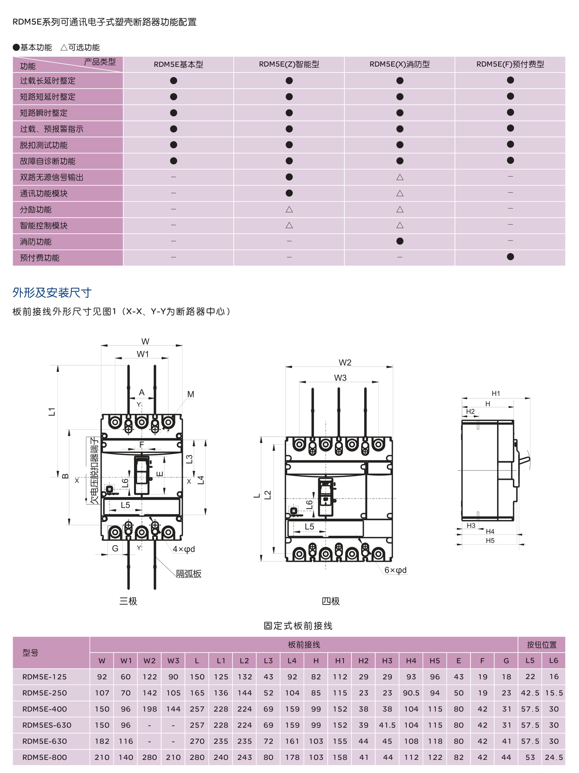 RDM5E系列电子式断路器适用于交流50Hz,额定工作电压至690V,额定电流至2000A以下的配电网络中,用来分配电能和保护线路及电源设备免受过载、短路和欠电压等故障的损坏。亦能作线路不频繁转换及电动机不频繁起动之用。断路器具有过载长延时反时限、短路短延时反时限、短路短延时定时限、短路瞬时和欠电压?;すδ?。该产品具有体积小、分断能力高、飞弧短、附件安装方便、抗震动的特点,是陆地及船舶使用的理想产品。