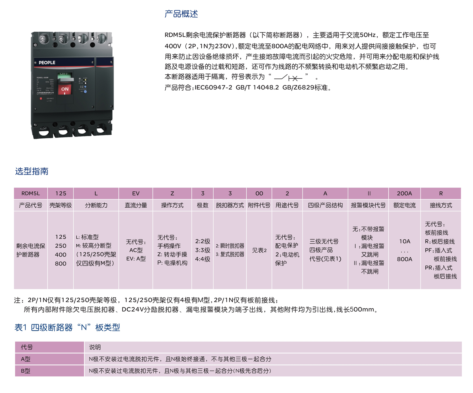 RDM5L系列剩余电流?;ざ下菲鳎ㄒ韵录虺贫下菲鳎饕视糜诮涣?0Hz,额定工作电压