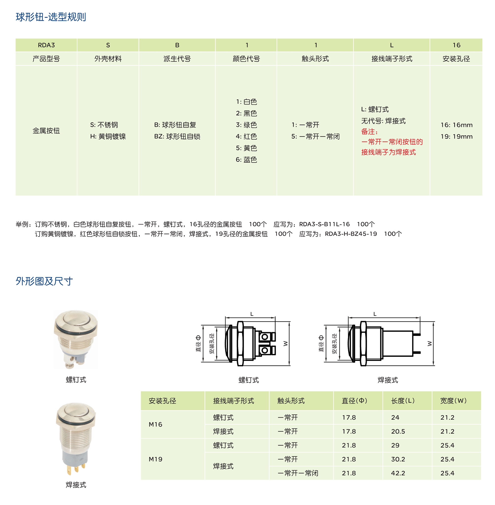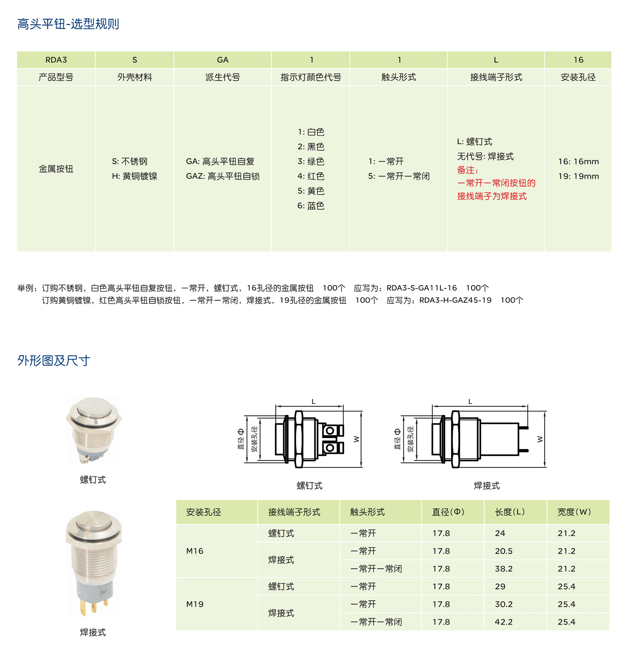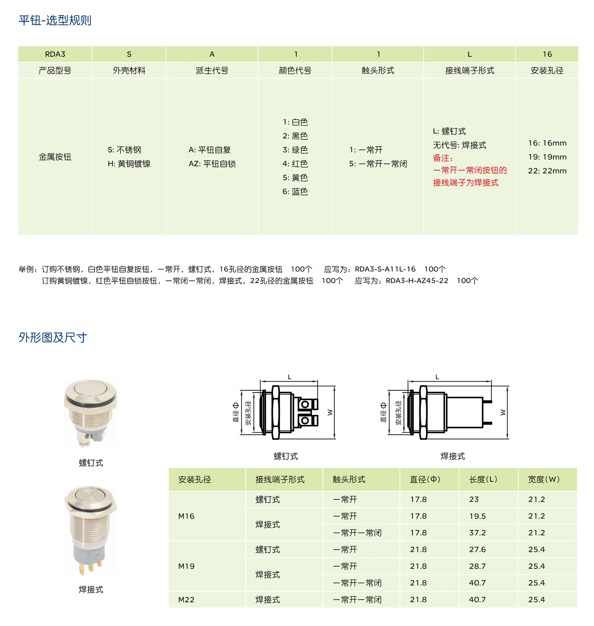 > RDA3系列金属按钮开关