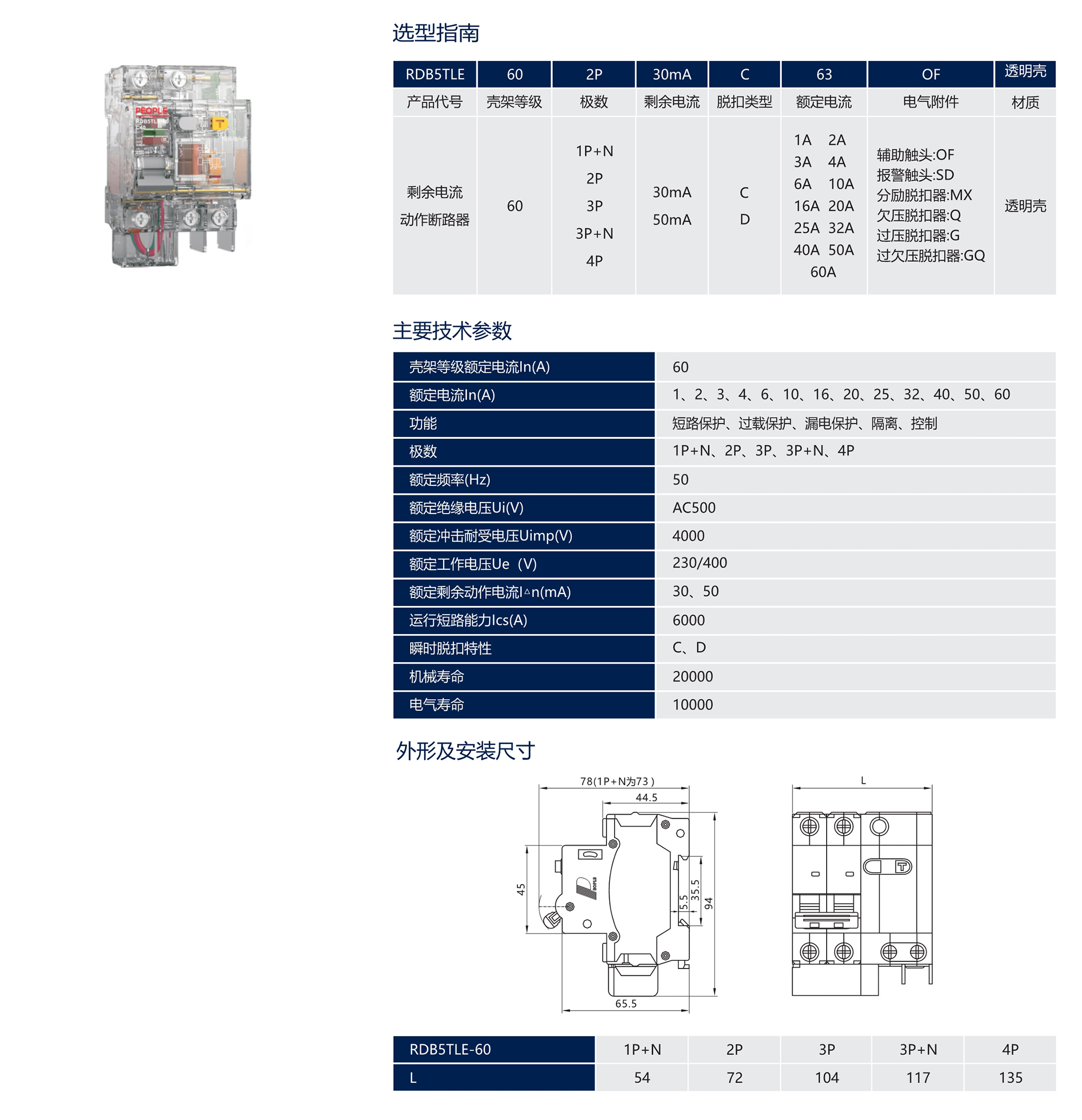 > RDB5TLE-60系列剩余电流动作断路器(透明壳)