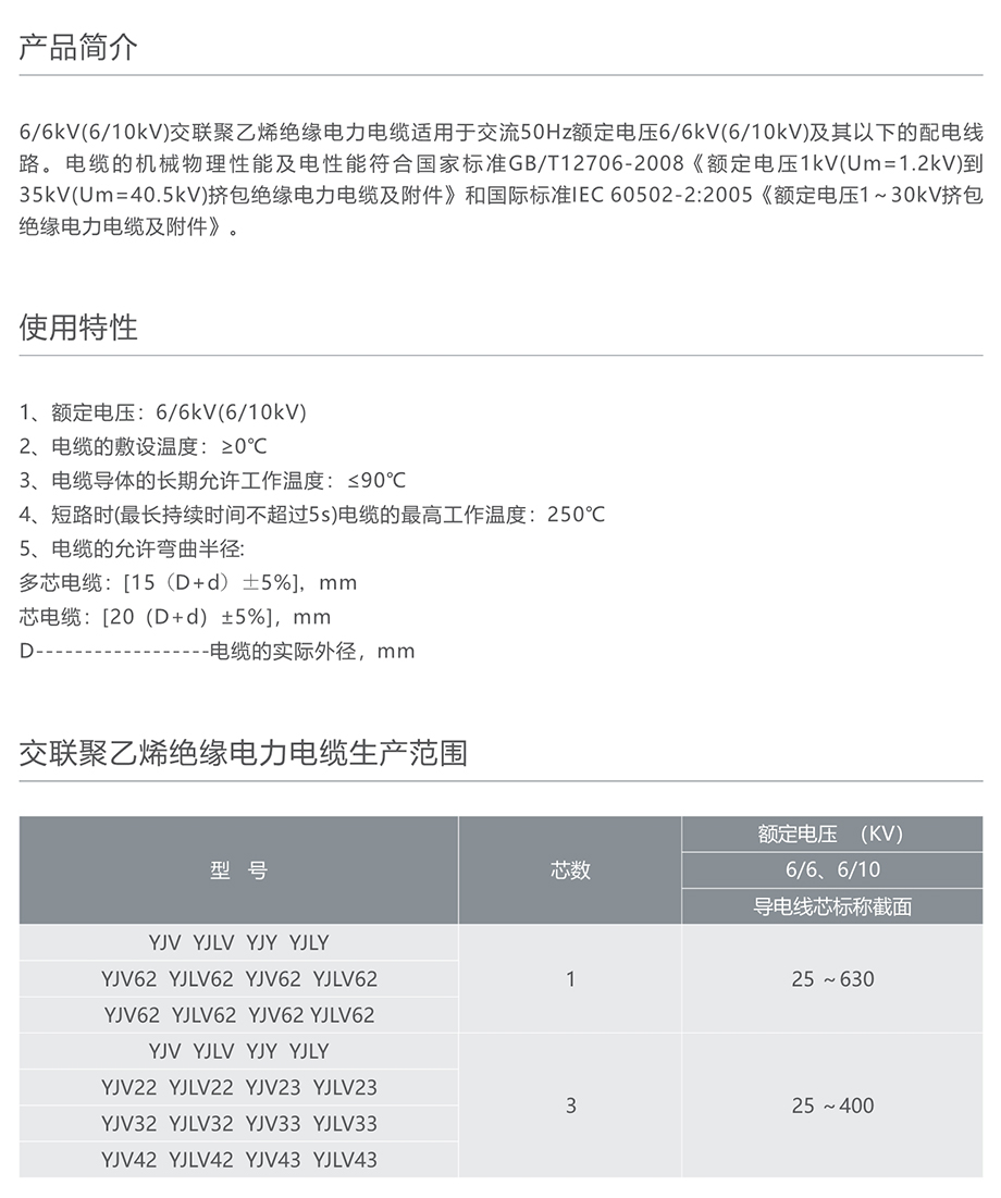 6/6kV(6/10kV) 交联聚乙烯绝缘电力电缆