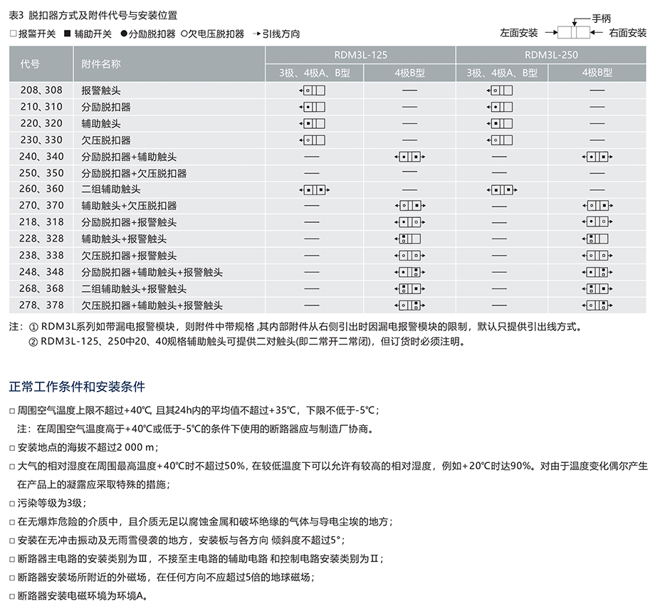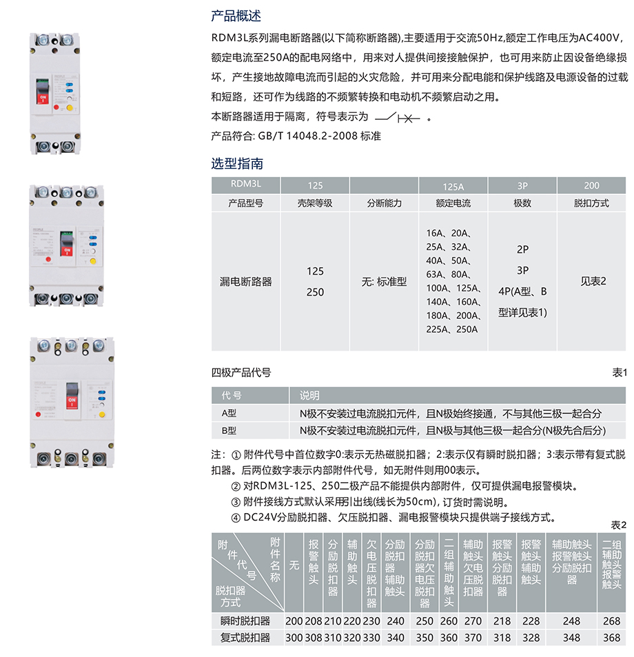 RDM3L系列漏电断路器(以下简称断路器),主要适用于交流50Hz,额定工作电压为AC400V,额定电流至250A的配电网络中,用来对人提供间接接触?;ぃ部捎美捶乐挂蛏璞妇邓鸹?,产生接地故障电流而引起的火灾危险,并可用来分配电能和?;は呗芳暗缭瓷璞傅墓睾投搪?,还可作为线路的不频繁转换和电动机不频繁启动之用。 本断路器适用于隔离,产品符合: GB/T 14048.2-2008 标准。