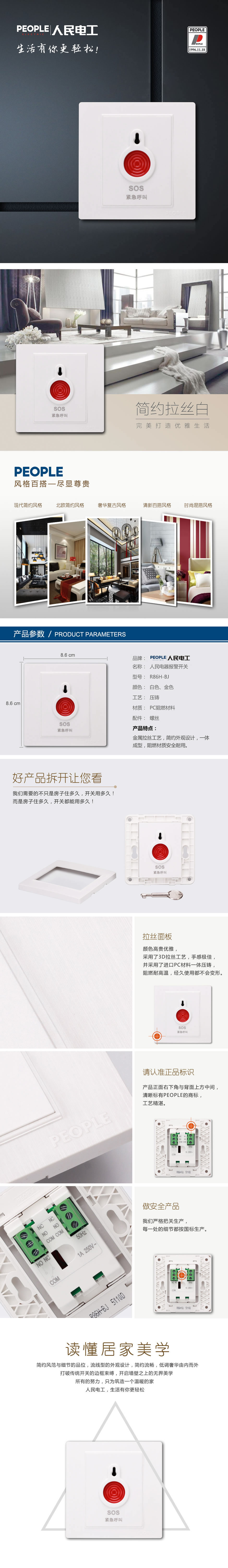 型号:R86H-BJ 报警开关,呼叫开关 ;颜色:白色、金色