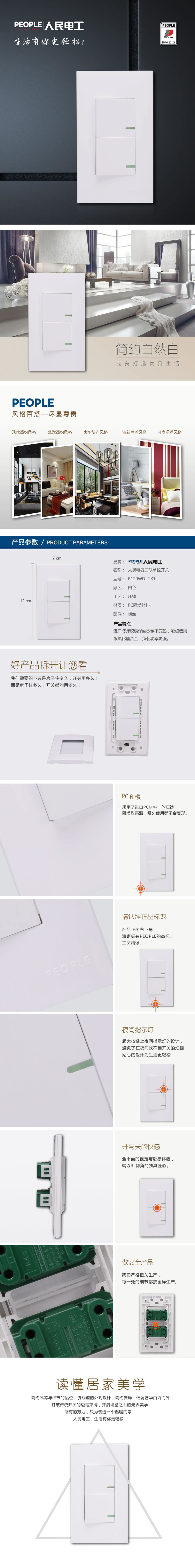 型号:R120WD-2K1 二联单控开关;颜色:白色