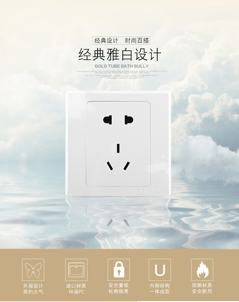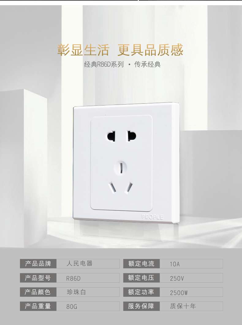 型号:R86D-ZL 五孔插座;颜色:乳白