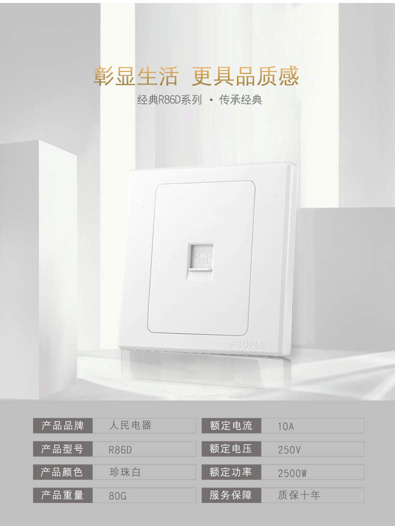 型号:R86D-T2 一联电话插座;颜色:乳白