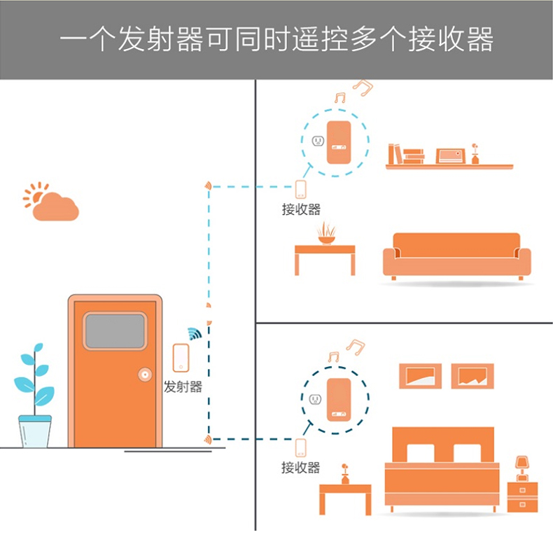 无需电池、无线???、自由对码、断电记忆、区分前后门、可调音量、超低功耗
