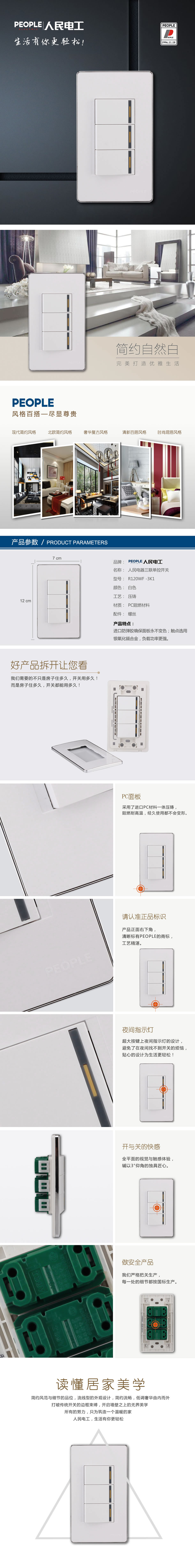 型号:R120WF-3K1 三联单控开关;颜色:白色