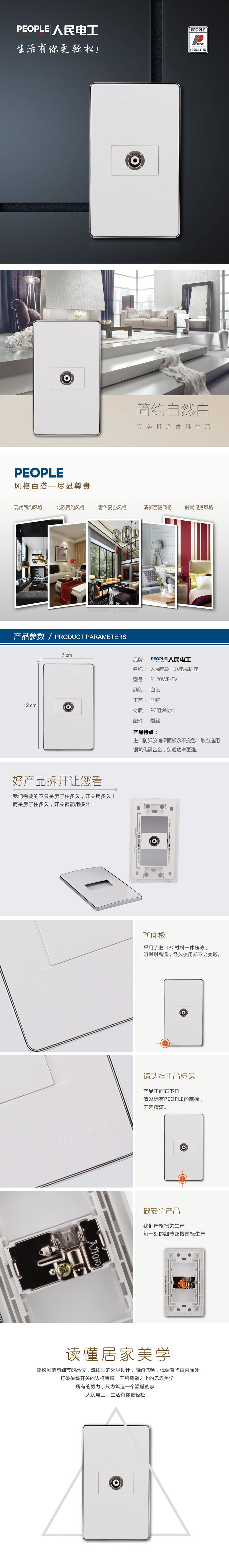 型号:R120WF-TV 一联电视插座;颜色:白色